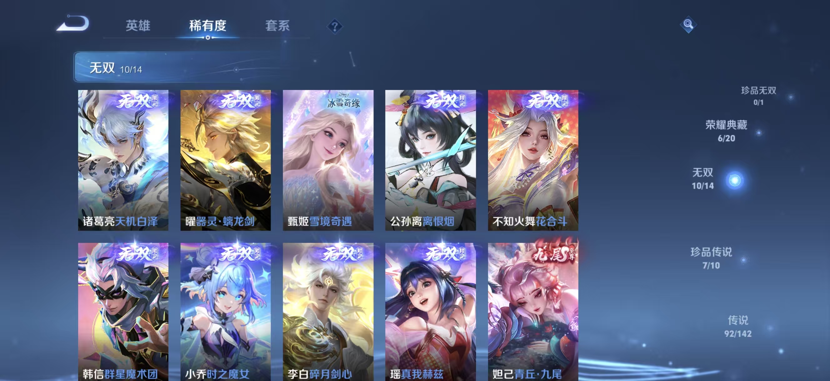 v10 635皮4金标 10无双6典藏7珍品传说92传说