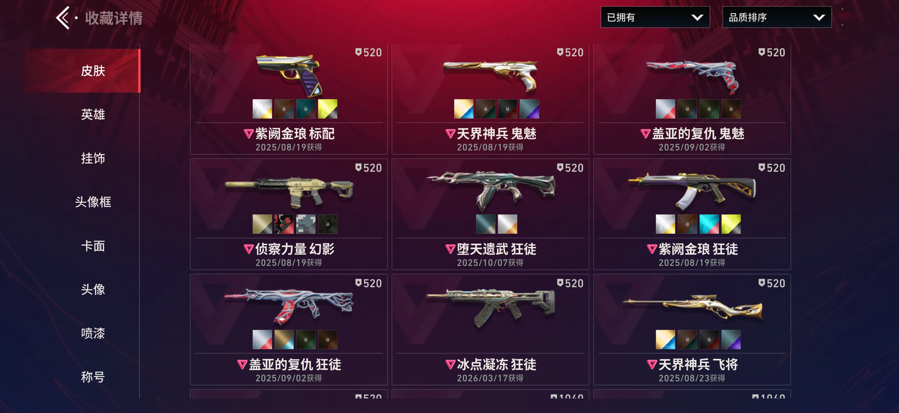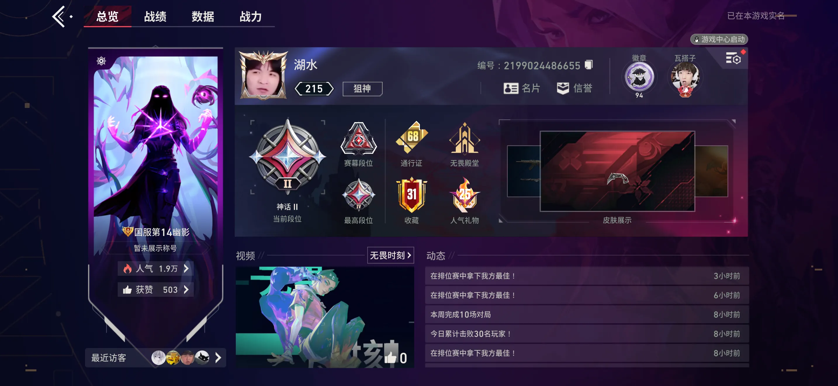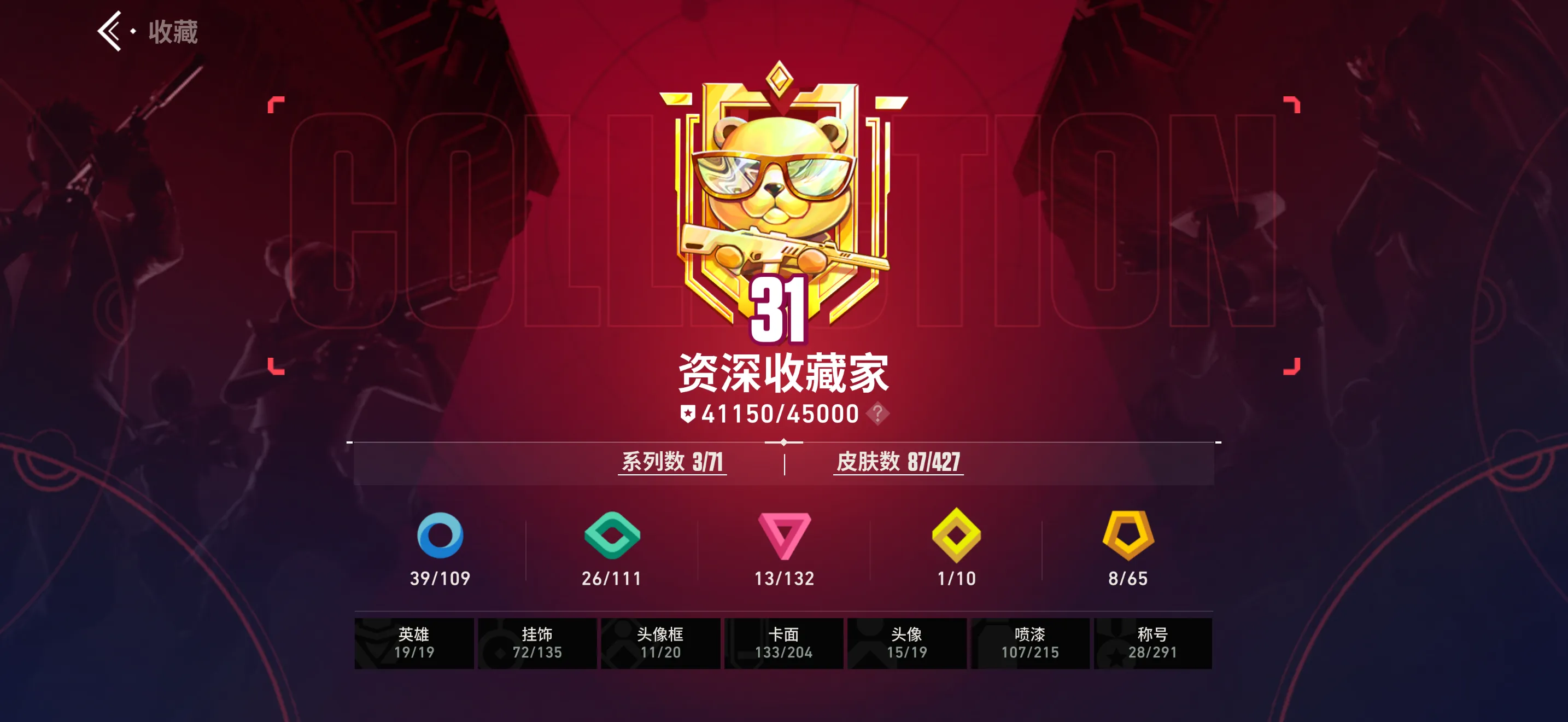 【全平台】 国服幽影✨侦查幻影/vct爪/天界套/离火/紫金/冰点狂徒✨热门限定全满✨31级收藏家✨内测头像框