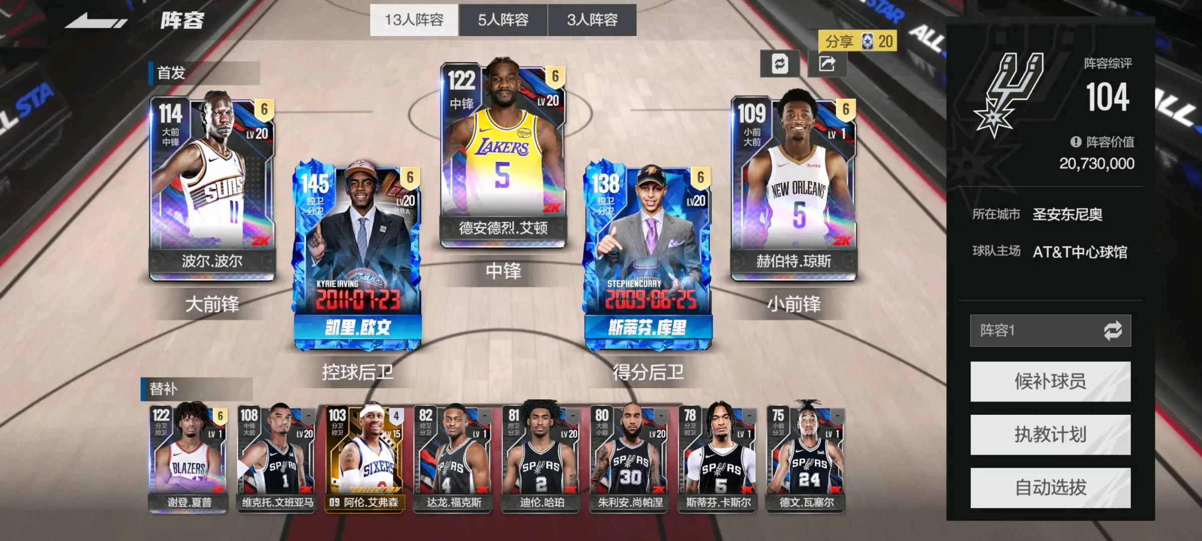 最新满突满级时刻库里➕时刻欧文❤️满突艾顿➕黑文班波尔波尔➕夏普琼斯❤️最强后场双枪组合