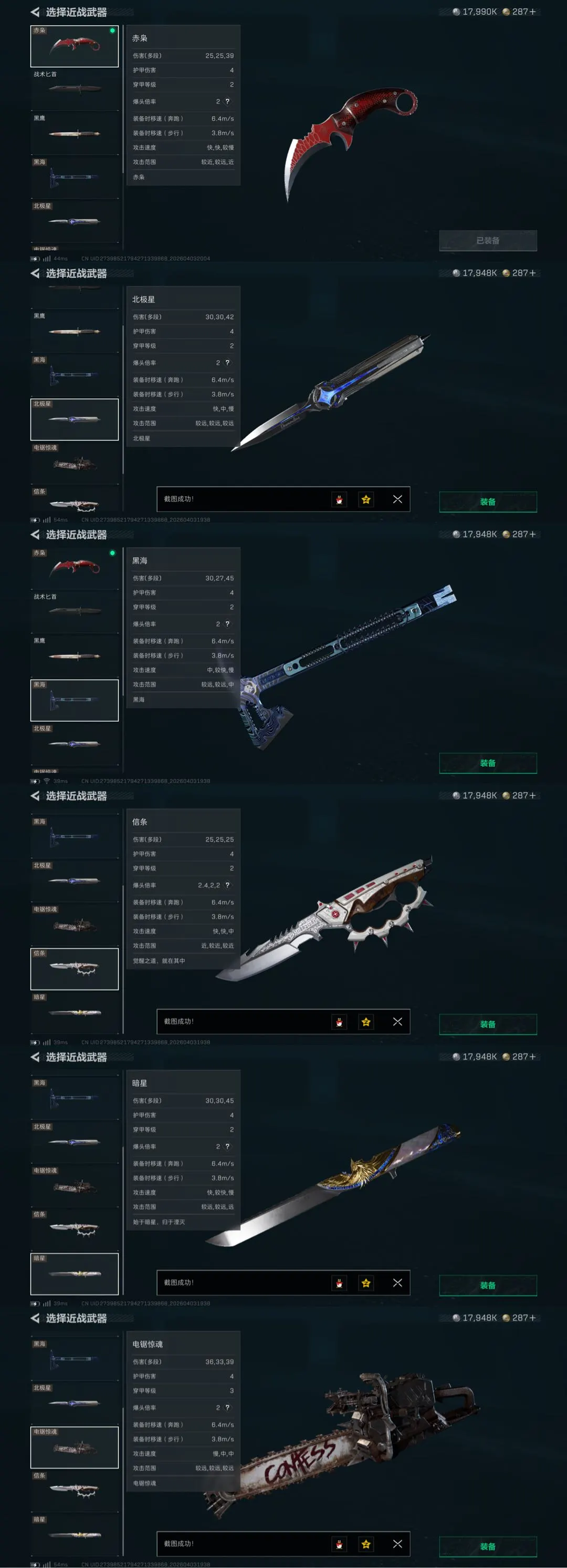 满红六刀|命运王牌 毁灭之源|蚀金 水墨 天际线 午夜 戴尔|赤枭 北极星 黑海 信条 暗星 电锯
