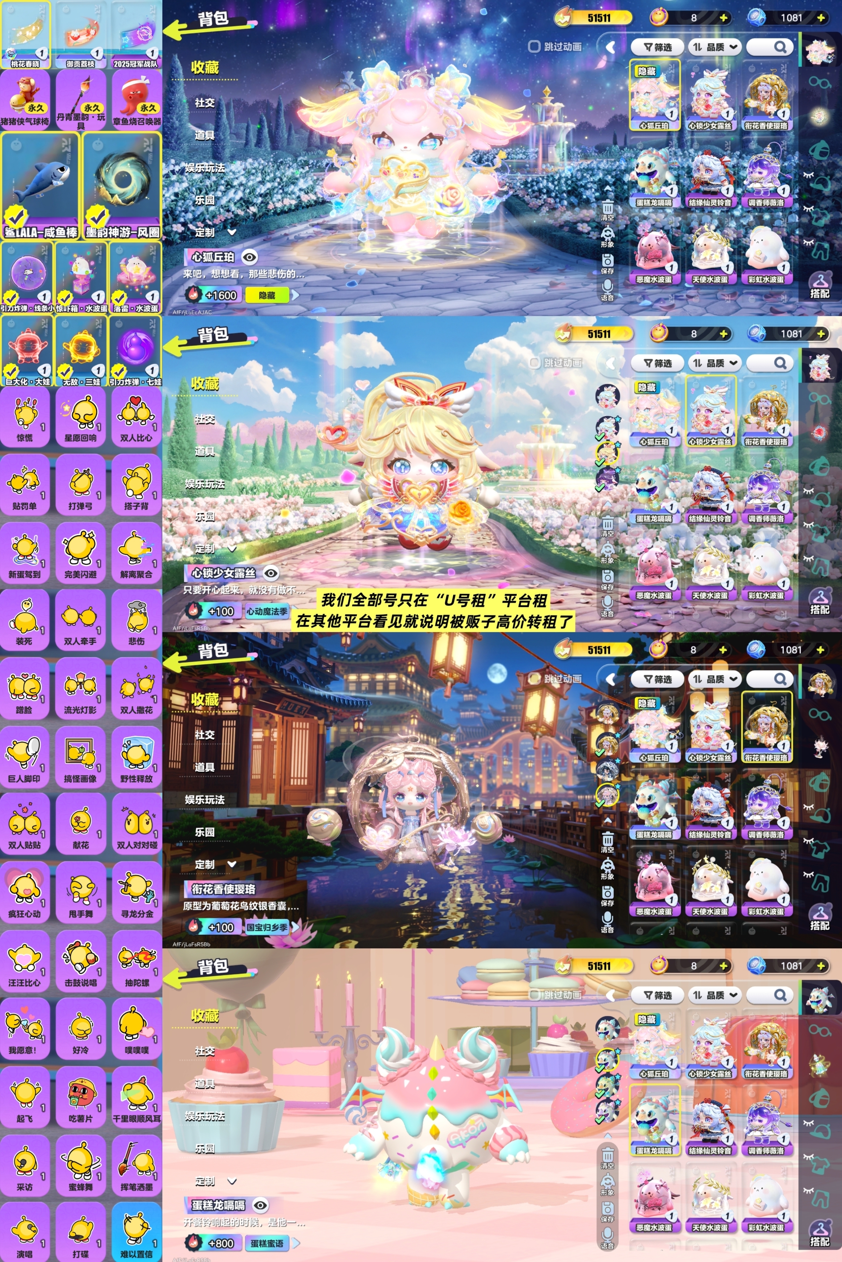 蛋仔派对,黎月园长,蔷薇红皇后,断罪骑士-极,圣翼天使-澄,暗匿小丑,蔷薇红皇后,音爆曜星,星际莱克,醒狮蛋宝,艾瑞和巴蒂,惑心小丑,欢宴园长,蔷薇白皇后,玉龙云岫,断罪骑士-岚,断罪骑士-烈,猎罪修罗-樱,猎罪修罗-溟,圣翼天使-恋,圣翼天使-堕,透明蓝帽,甜酷阿莉,织梦精灵,冰霜骑士,水母莱莱,小蓝帽,清姬樱子,深海灏克,胆小鬼,木偶波露,蟹船长,黑森麦克,月影摇摇兔、仙舞飘飘鹿、透明蓝帽、机甲、浪花戴露姗、小羊、兔兔车、白皇后、懒羊羊、鲨莉娃、砂糖熊王子,佣兵,杰克,赵云,园丁,橙留香,梅海海,铃兰三月兔,焰心龙女芙瑞,曙光龙女芙瑞,翠羽之屏,单字,极真阿莉,无敌凤凰,超级凤凰,许愿币,小羊衣橱,彩虹币,龙车,兔车,鹿车,至臻滚动特效,大佬,土豪,神豪,雪影极光羽,鱼龙舞,桃花春晓,密会,王者荣耀,和平精英,第五人格,元梦之星,火影忍者,手游Cf,穿越火线,无畏契约,三角洲行动,使命召唤手游,超自然行动组,逃出惊魂夜,专鹊