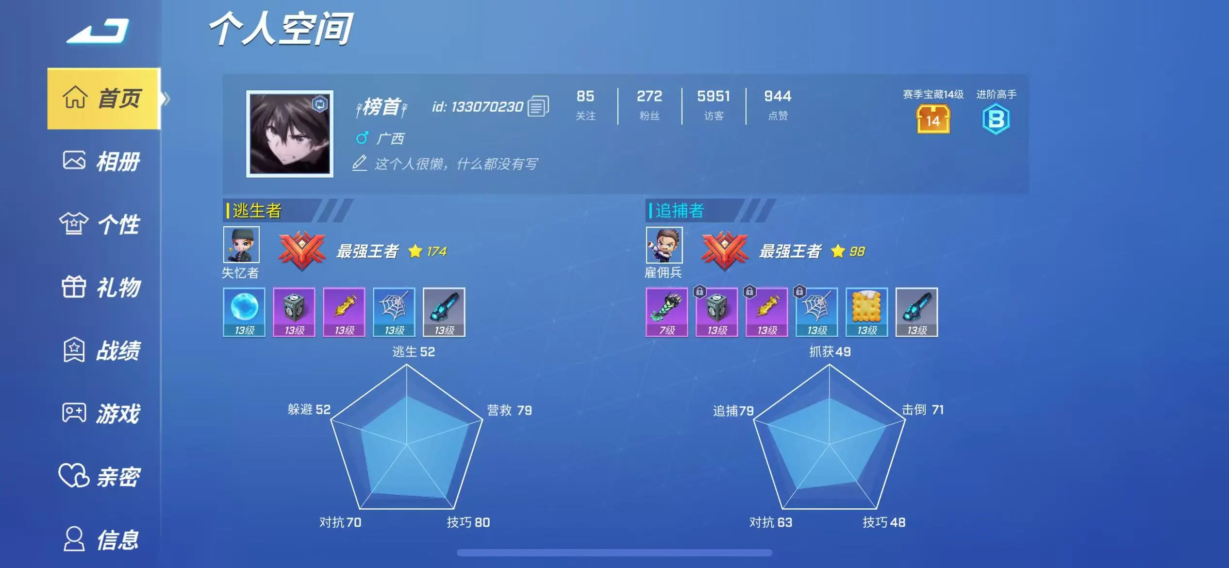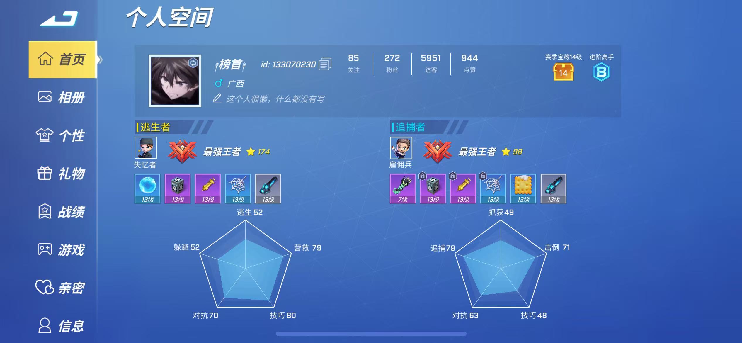 逃跑吧少年账号【官方版本】安卓苹果通用租号28个13级逃跑号登录多角色装扮皮肤