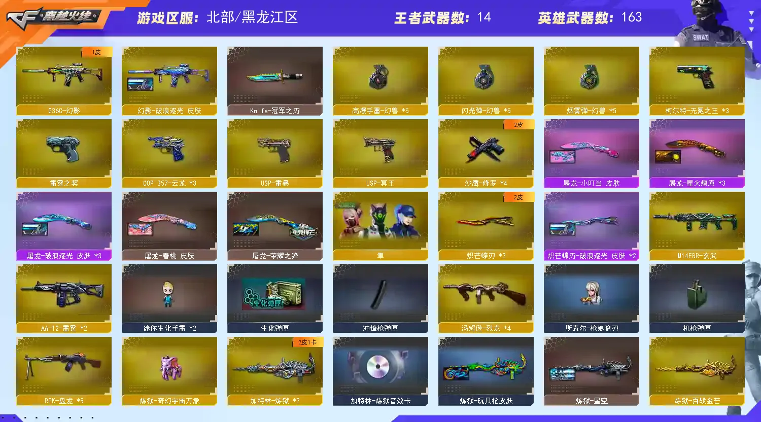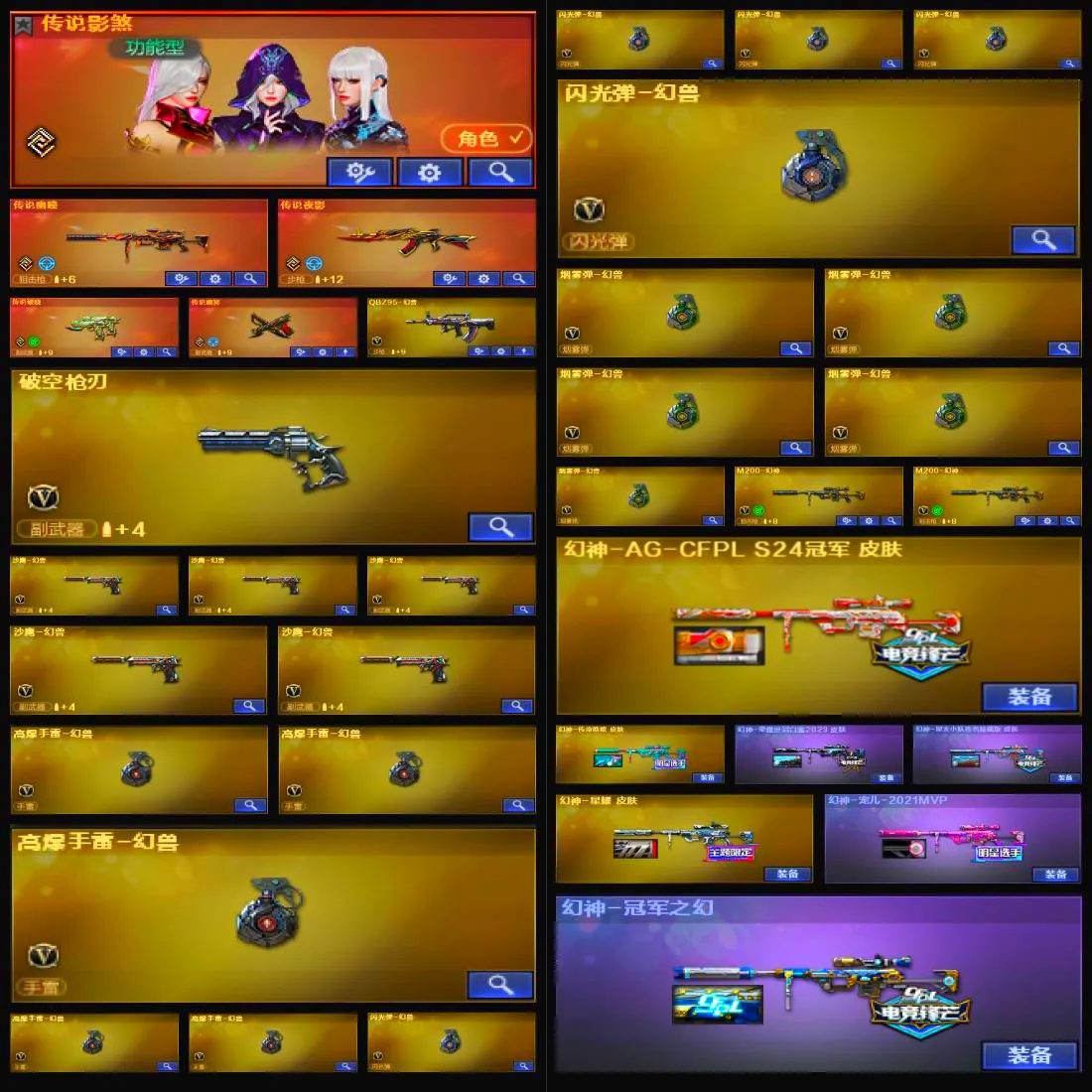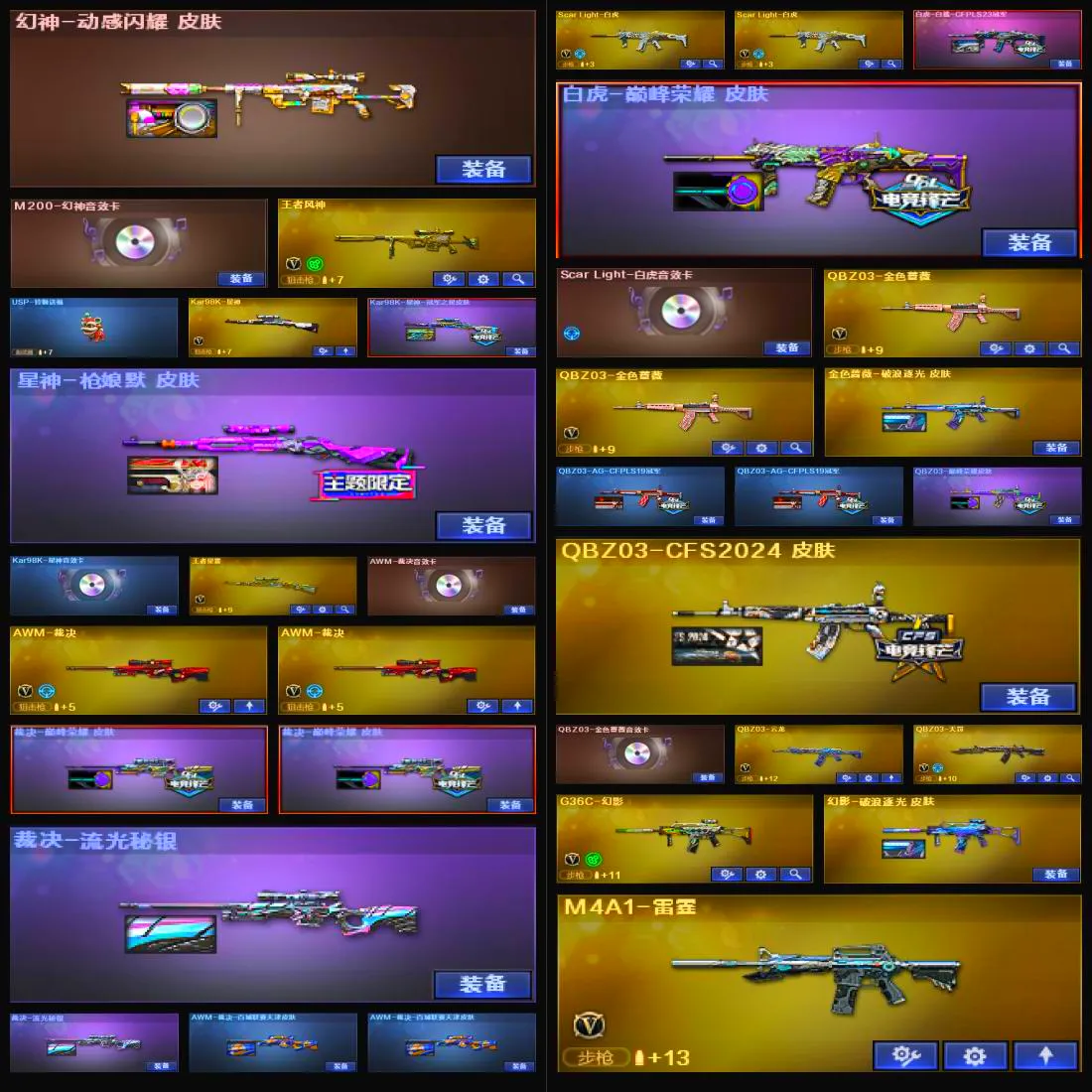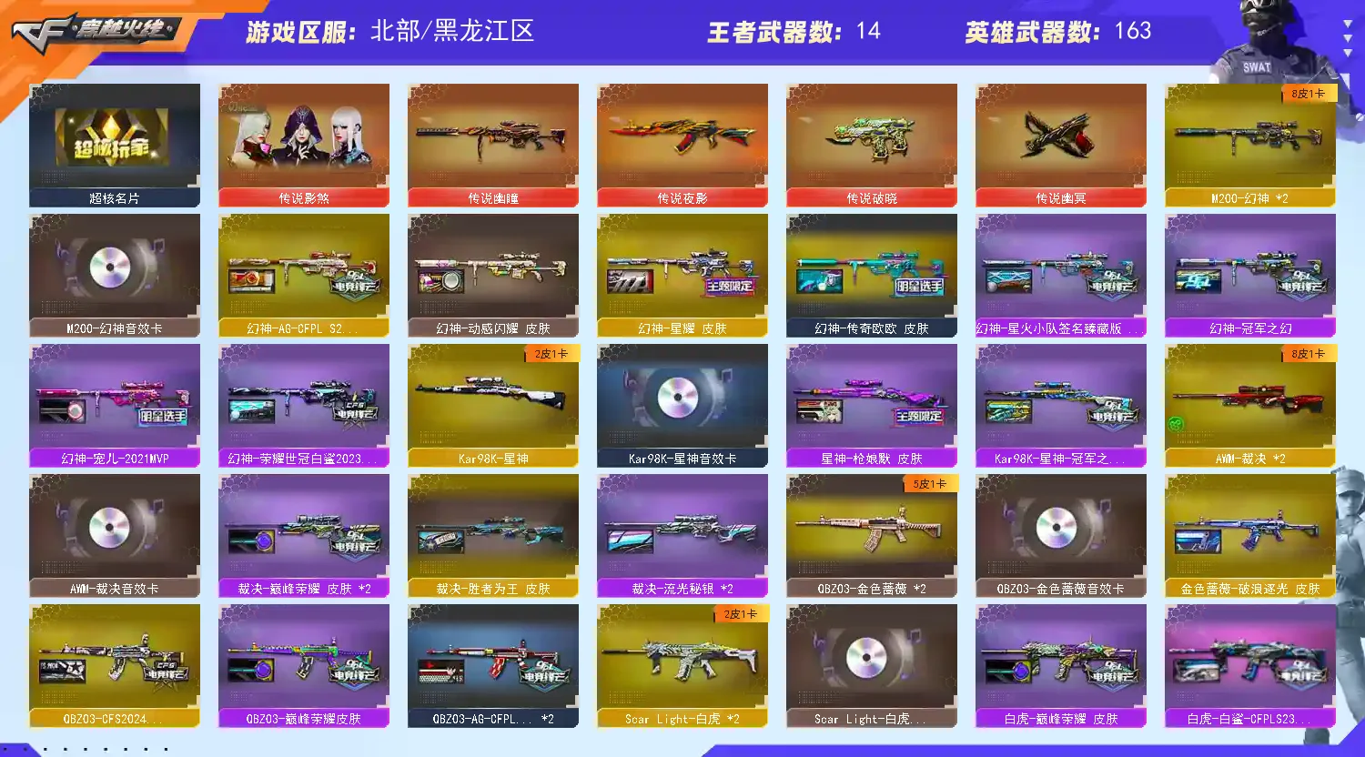 V武器数174】【幻神三件套】【幻神7皮】【星神三件套】【裁决三件套】【白虎三件套】【金色蔷薇三件套】【斯泰尔-枪娘暗刃】【MK5-炽火炎龙】【竞技荣光套装X2套】【云龙套装X1套】【幻灵套装X2套】【雷霆套装X7套】【幻兽套装X5套】【传说影煞】【传说幽瞳】【传说夜影】【传说破晓】【传说幽冥】【QBZ95-幻兽】【破空枪刃】【沙鹰-幻兽】【高爆手雷-幻兽】【闪光弹-幻兽】【烟雾弹-幻兽】【M200-幻神】【幻神-AG-CFPL S24冠军 皮肤】【幻神-AG-CFPLS24冠军 皮肤】【幻神-荣耀世冠白鲨2023 皮肤】【幻神-星火小队签名臻藏版 皮肤】【幻神-星耀 皮肤】【幻神-宠儿-2021MVP】【幻神-冠军之幻】【幻神-动感闪耀 皮肤】【M200-幻神音效卡】【王者风神-觉醒版】【Kar98K-星神】【Kar98K-星神-冠军之星皮肤】【星神-枪娘默 皮肤】【Kar98K-星神音效卡】【王者星霆】【AWM-裁决】【AWM-裁决音效卡】【裁决-巅峰荣耀 皮肤】【裁决-流光秘银】【裁决-胜者为王 皮肤】【AWM-裁决-百城联赛天津皮肤】【Scar Light-白虎】【白虎-白鲨-CFPLS23冠军】【白虎-巅峰荣耀 皮肤】【Scar Light-白虎音效卡】【QBZ03-金色蔷薇】【金色蔷薇-破浪逐光 皮肤】【QBZ03-AG-CFPLS19冠军】【QBZ03-巅峰荣耀皮肤】【QBZ03-CFS2024 皮肤】【QBZ03-金色蔷薇音效卡】【QBZ03-云龙】【QBZ03-天罚】【G36C-幻影】【幻影-破浪逐光 皮肤】【M4A1-雷霆】【M4A1-青龙】【M14EBR-玄武】【USP-雷暴】【USP-冥王】【柯尔特-无冕之王】【破空枪刃】【沙鹰-幻兽】【雷霆之契】【COP 357-云龙】【炽芒蝶刃】【炽芒蝶刃-破浪逐光 皮肤】【Knife-冠军之刃】【黄金猫猫手套-白鲨】【炼狱-奇幻宇宙万象】【加特林-炼狱】【RPK-盘龙】【炼狱-百战金芒】【魂·炼狱-玩具枪】【汤姆逊-烈龙】【烈龙-云海游龙】【斯泰尔-枪娘暗刃】【MK5-炽火炎龙】【MAC-10-千针棘鲨】【USP-铃狮送福】【炼狱-奇幻宇宙万象】【传说影煞】【电竞教官-云悠悠】【关小雨】【蝴蝶】【零】【奇洋探员】【枪娘樱】【乔伊教练】【晴雅】【蛇隐宗】【王者-零-国色天香】【王者-魅影】【王者影豹】【王者之瞳】【王者岚兮儿】【修道士】【雨墨】【云海玲珑】【炫】【隼】【M4A1-雷神】【雷神-虎牙平台皮肤】【雷神-荣耀之魄】【M4A1-雷神-巅峰荣耀皮肤】【雷神-R.LGD-CFPLS18冠军】【雷神-传奇N9】【雷神-HeartShot 皮肤】【雷神-维纳斯皮肤】【雷神-能量核心】【雷神-星空】【雷神-暗月】【AK47-火麒麟】【火麒麟-巅峰荣耀】【火麒麟-心动糖果】【火麒麟-CFSTAR】【M4A1-黑骑士】【黑骑士-AG-S4冠军典藏】【黑骑士-暗月】【M4A1-黑龙】【黑龙-冠军之武】【黑龙-能量核心】【黑龙-暗月】【Barrett-毁灭】【巴雷特-毁灭-CFPL冠军】【毁灭耀金皮肤】【毁灭-航天科技皮肤】【毁灭-百城浙江 皮肤】【毁灭-暗月】【Barrett-毁灭音效卡】