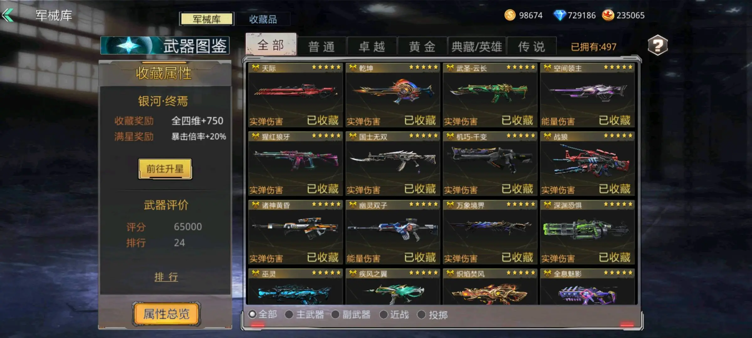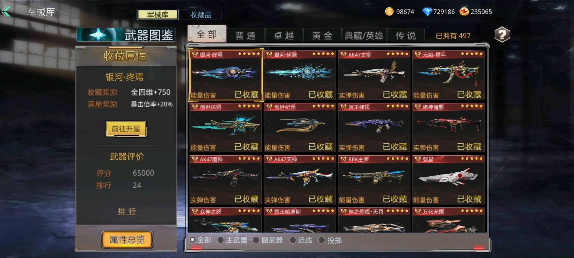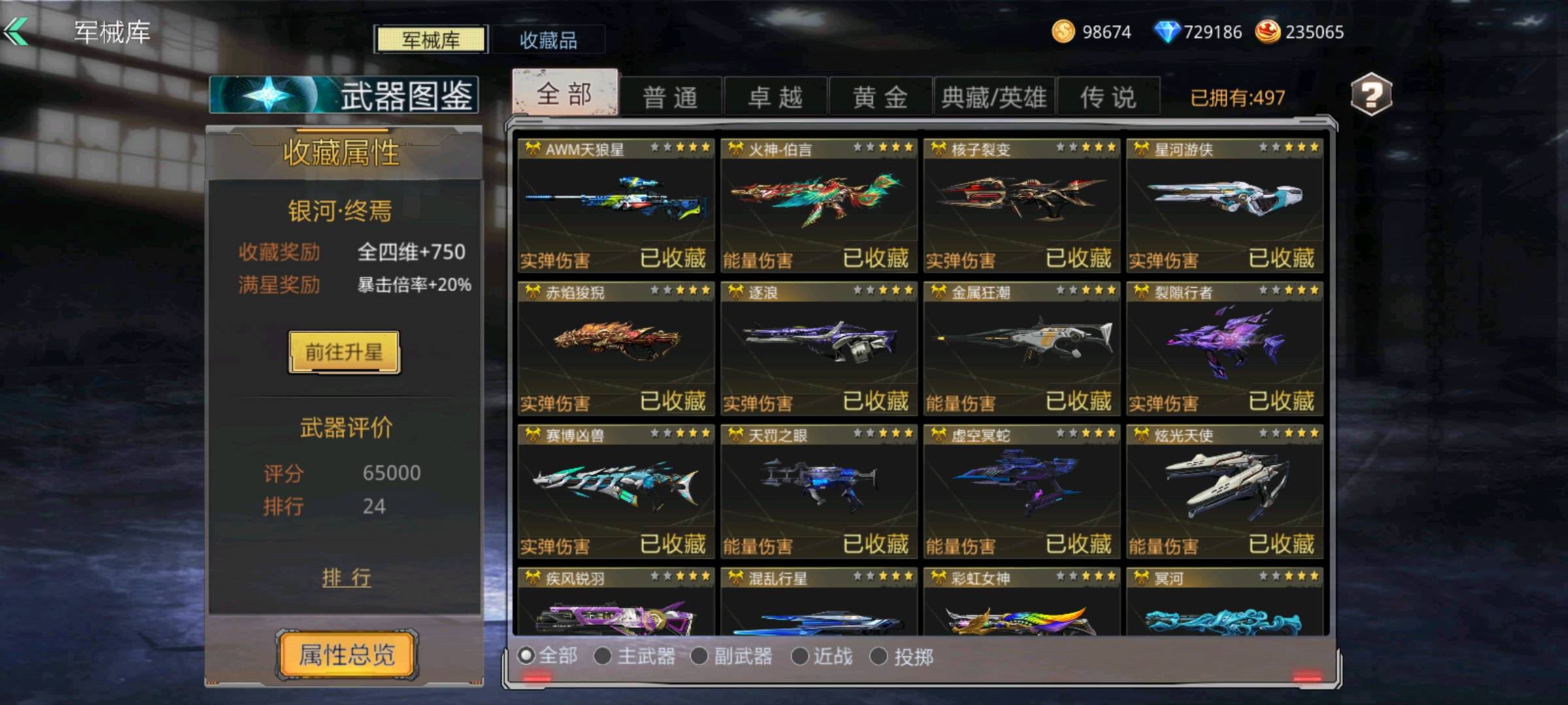游戏盒登录,累充近五万,银河终焉天罚星珀星斗套创世套冥王套等全传说(除龙神殒神),除蝶舞礼花全典藏,战争女神,战神比伯,典藏大部分是五三,赛季武器全有,强力的都是五三,英雄武器也基本全,冒险战力400万,主攻变异,加成算是全服最高的一批,变异该有的配置、武器都有,爽玩变异。