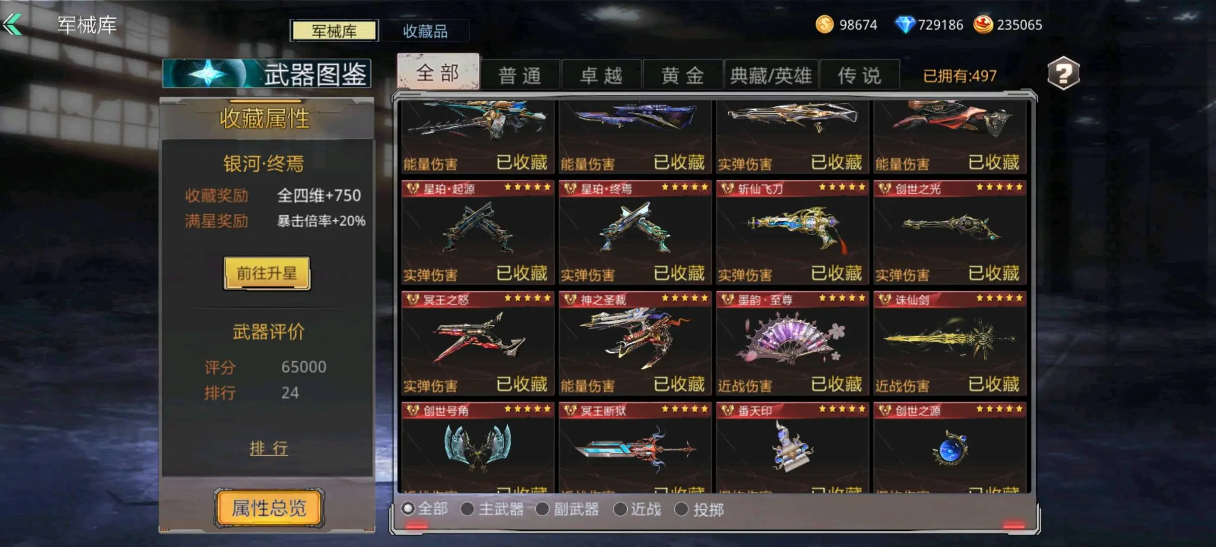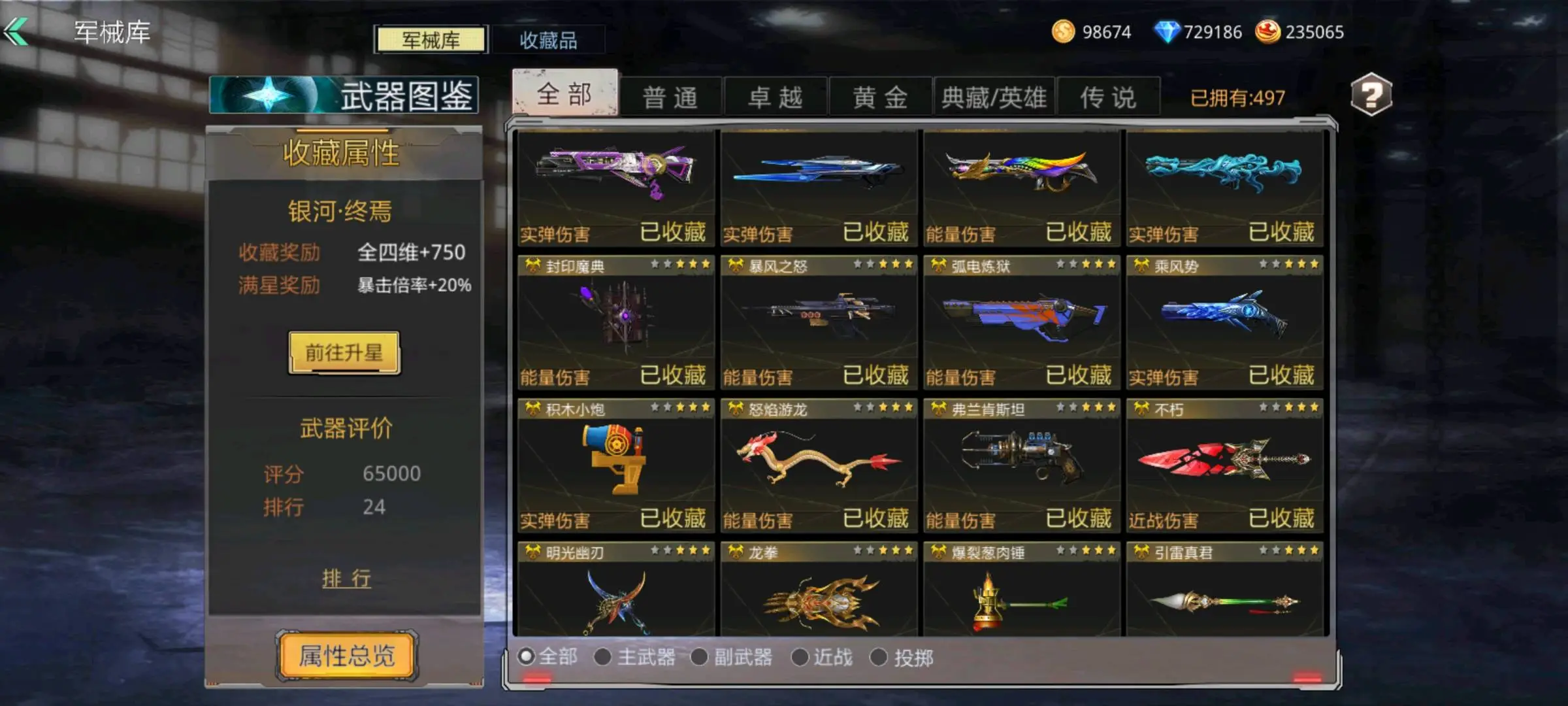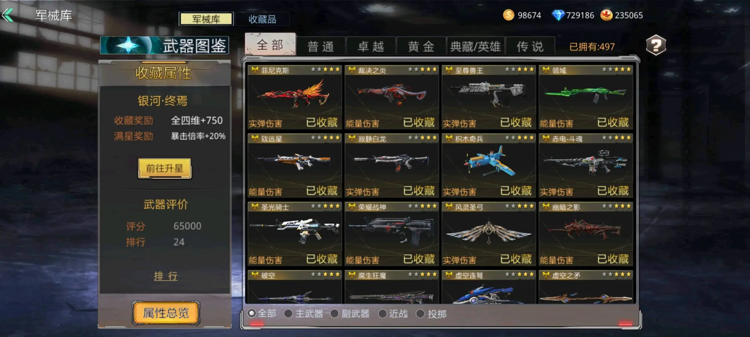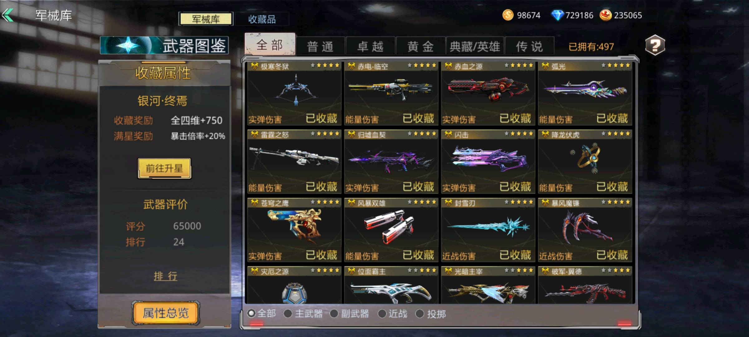 游戏盒登录,累充近五万,银河终焉天罚星珀星斗套创世套冥王套等全传说(除龙神殒神),除蝶舞礼花全典藏,战争女神,战神比伯,典藏大部分是五三,赛季武器全有,强力的都是五三,英雄武器也基本全,冒险战力400万,主攻变异,加成算是全服最高的一批,变异该有的配置、武器都有,爽玩变异。