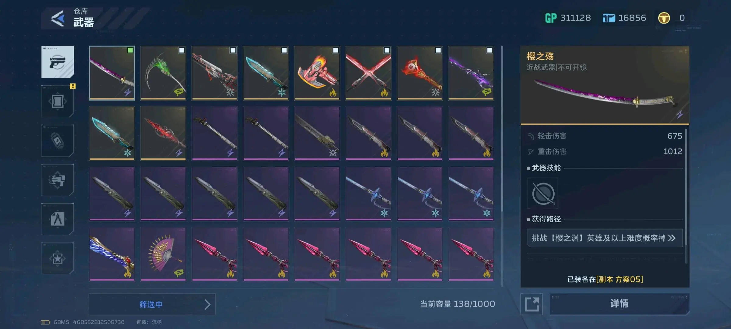 炼狱蝎王,玄凌飞刃,暗夜之殇,浪里白条,樱之殇,幽冥毒皇,精绝兽神,死神猎手,飓风之龙,冥河之矛,能源之影,战争矩阵,蛇神之剑,蛇神之矛,死神镰刀,武装斧头,血怨,沙暴冷锋,冰点双锋