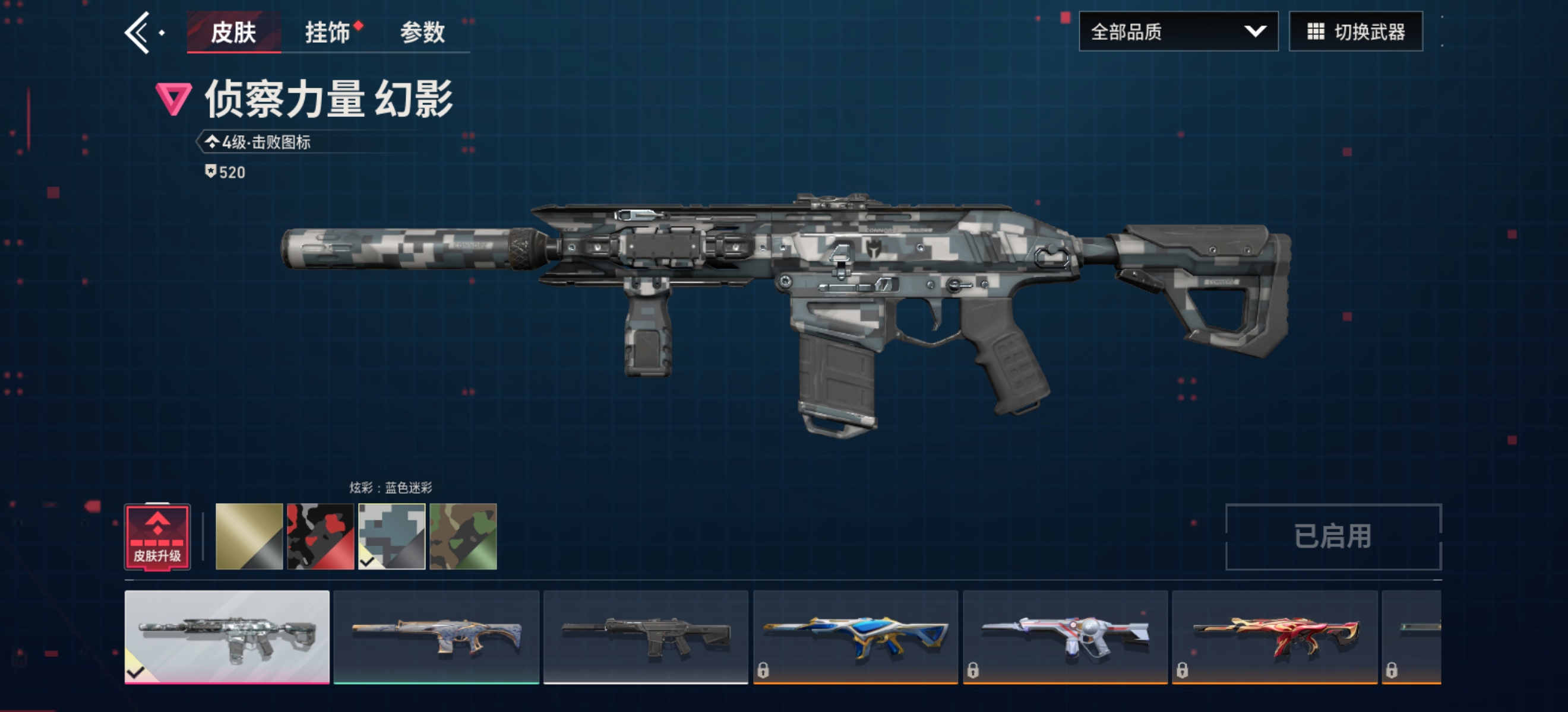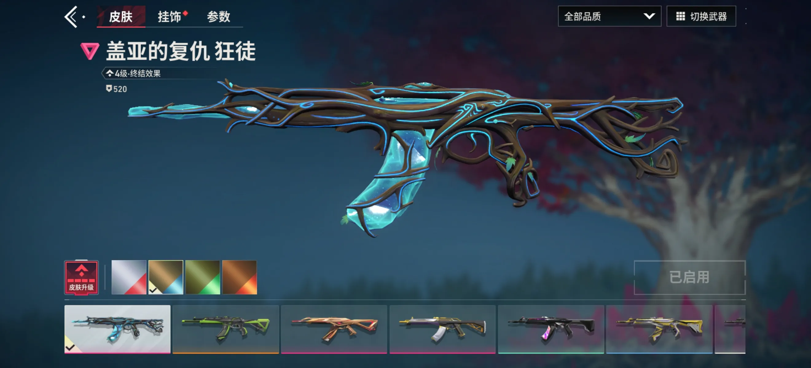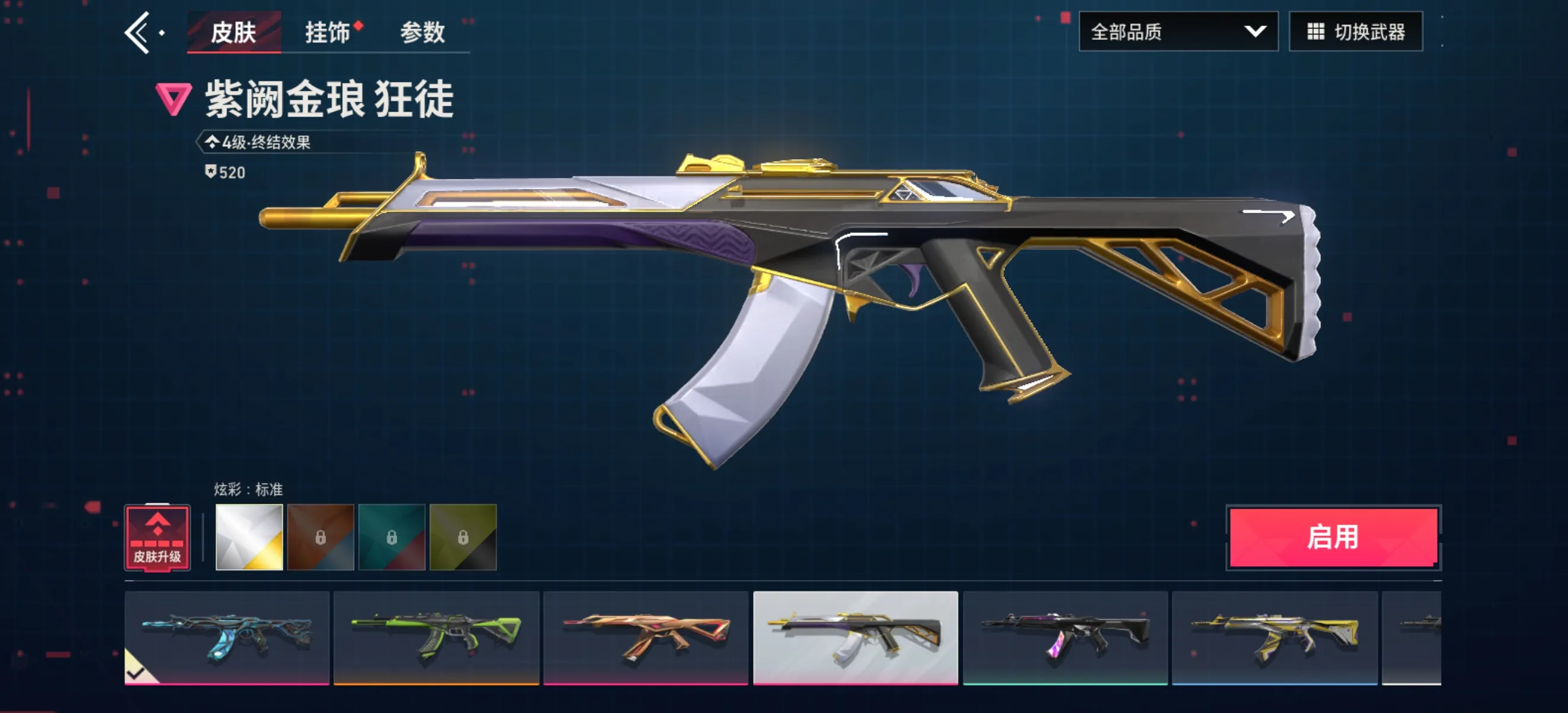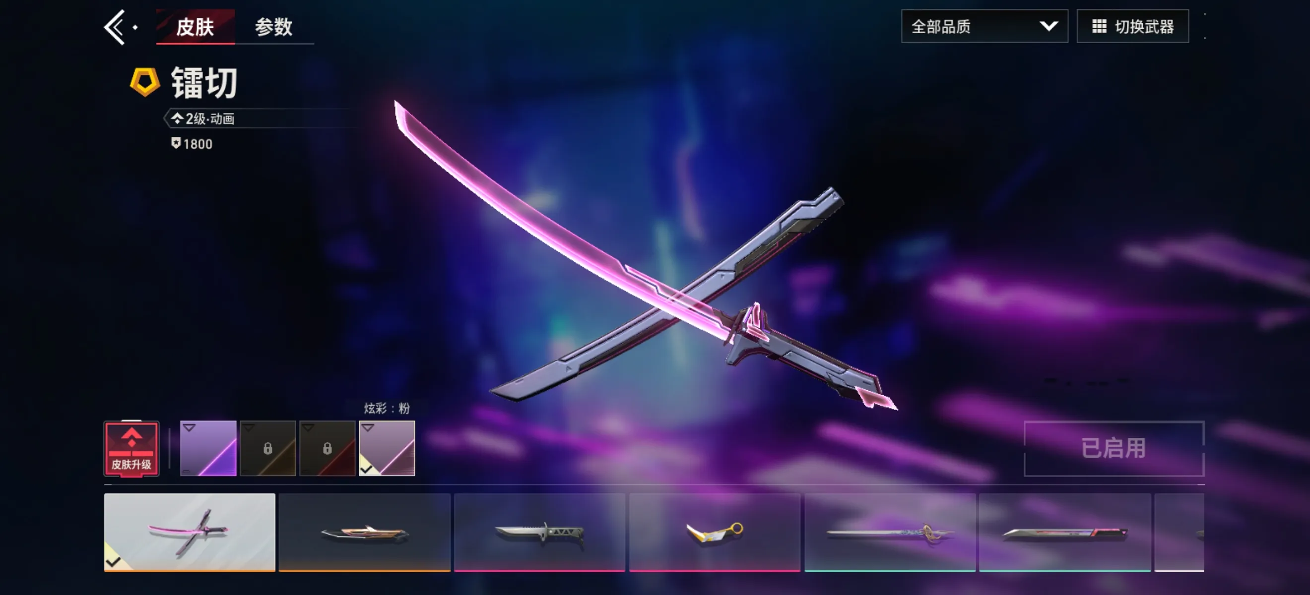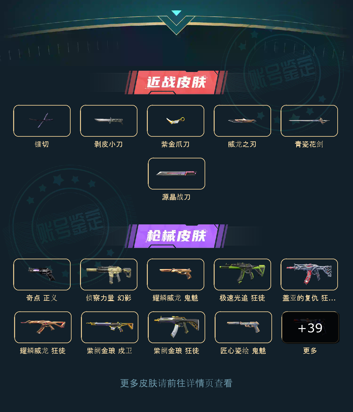 盖亚的复仇狂徒、极速光追狂徒、耀鳞威龙狂徒、紫阙金琅狂徒、侦察力量幻影、紫阙金琅戍卫、镭切、威龙之刃、剥皮小刀、紫金爪刀、青瓷花剑、奇点正义、耀鳞威龙鬼魅、匠心瓷绘鬼魅