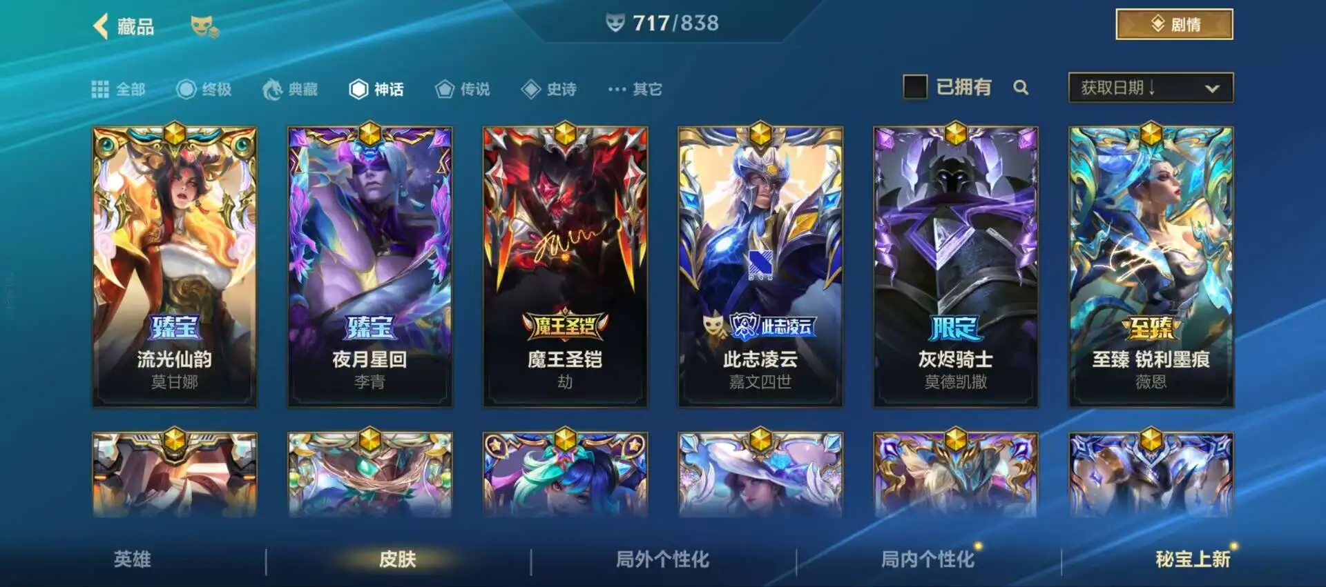 【安卓】 皮肤717个,大多数都有了,神话也是35个以上