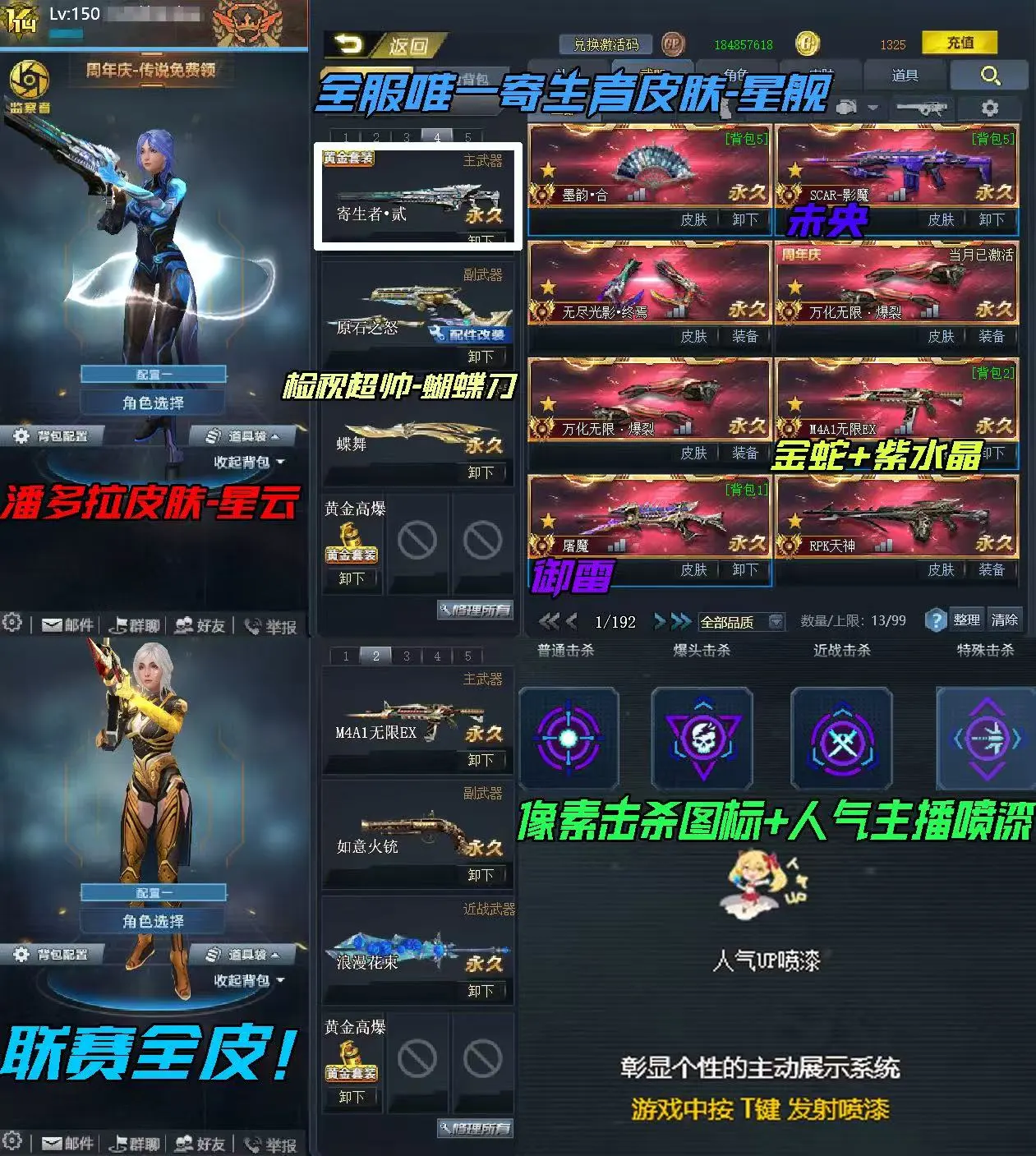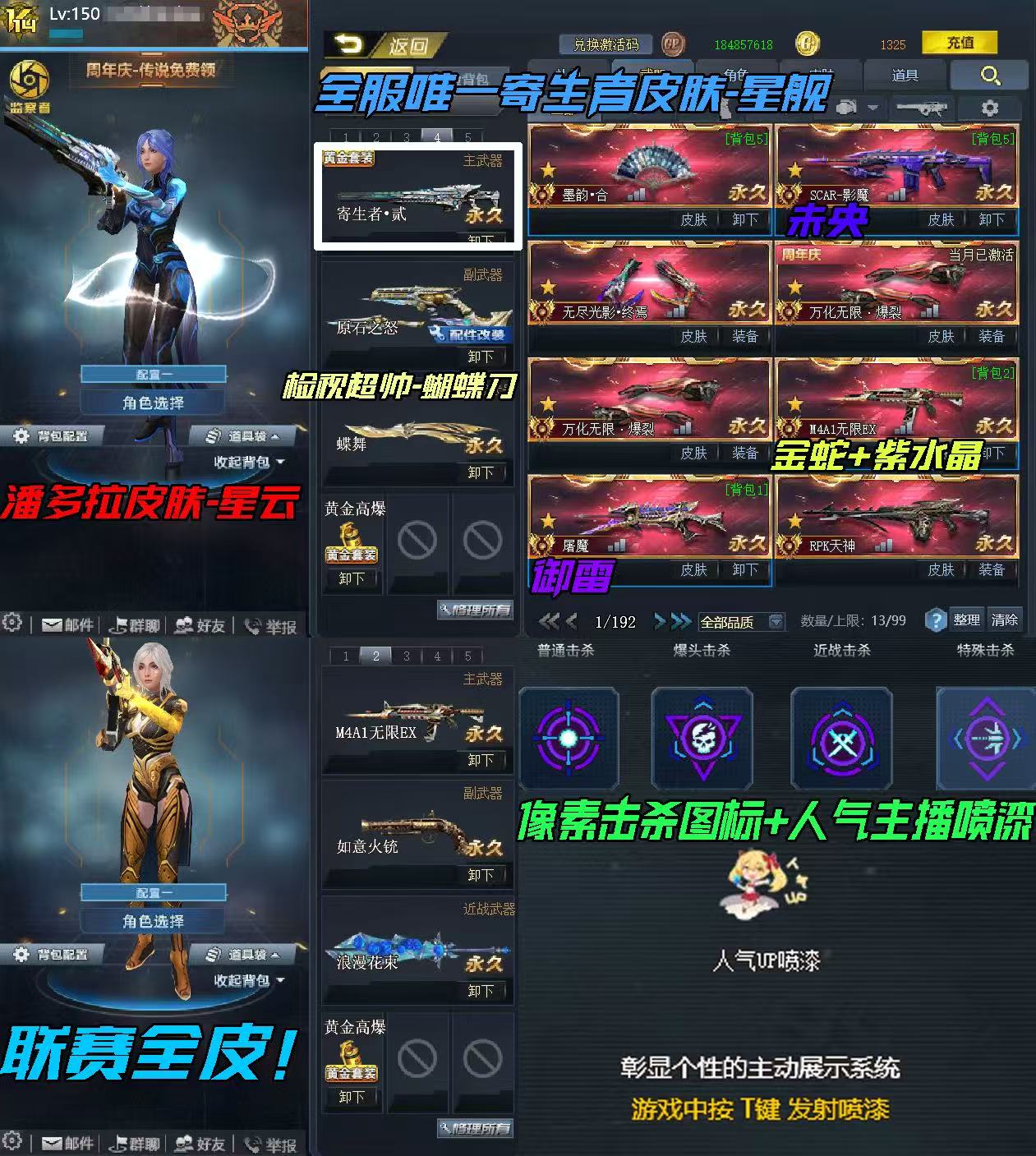 V14最强主播号:11传说血清❤️断罪❤️蝴蝶刀❤️潘多拉皮肤❤️三款限定联赛皮肤❤️无限ex屠魔