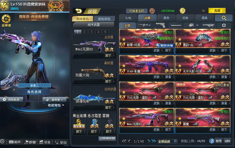 本号亮点◆潘多拉蓝皮◆全服唯一终极寄生者◆黄金战团(满挂饰)◆烬灭使者(满挂饰)◆熙碧儿(超音战士)◆原石联赛皮◆花束联赛皮◆蝴蝶刀◆无限紫水晶金蛇◆屠魔御雷◆影魔未央◆多稀有绝版喷漆(新补 v11角色 阎魔咆哮 雷霆之怒 血清补了两百多天)