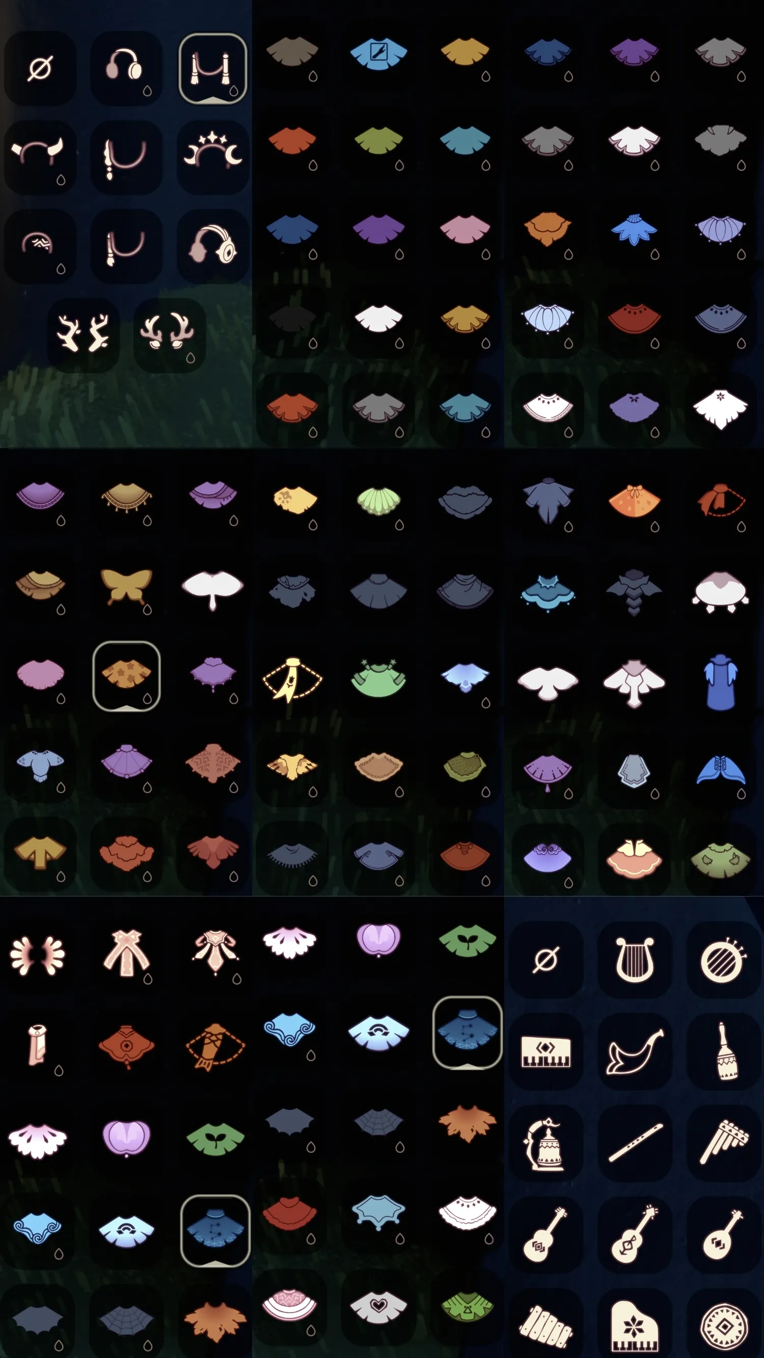 晨岛胡子 云野小飞象 雨林雨妈 霞谷平菇卡卡 墓土龙骨 禁阁指甲盖光崽 全季节毕业:音韵项链 白鸟发 魔法项链/耳坠/咖喱/ 圣岛项链/手碟/鲲斗 预言项链/鼓/阿努比斯 梦想项链/凤凰斗 集结项链/锅/麻袋斗 王子项链王子套装/多羽发饰 潜海项链/潜水面具 表演项链/白枭 破晓项链/遥鲲斗/冥龙斗 等等……