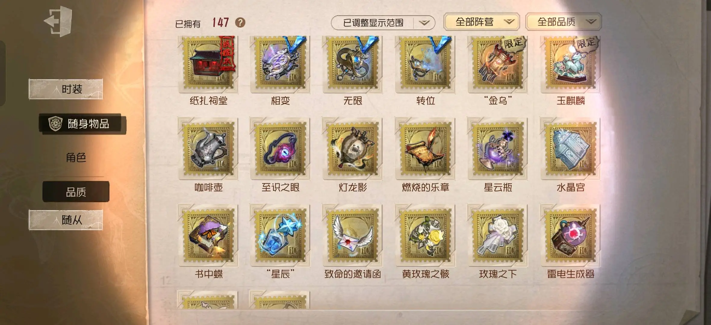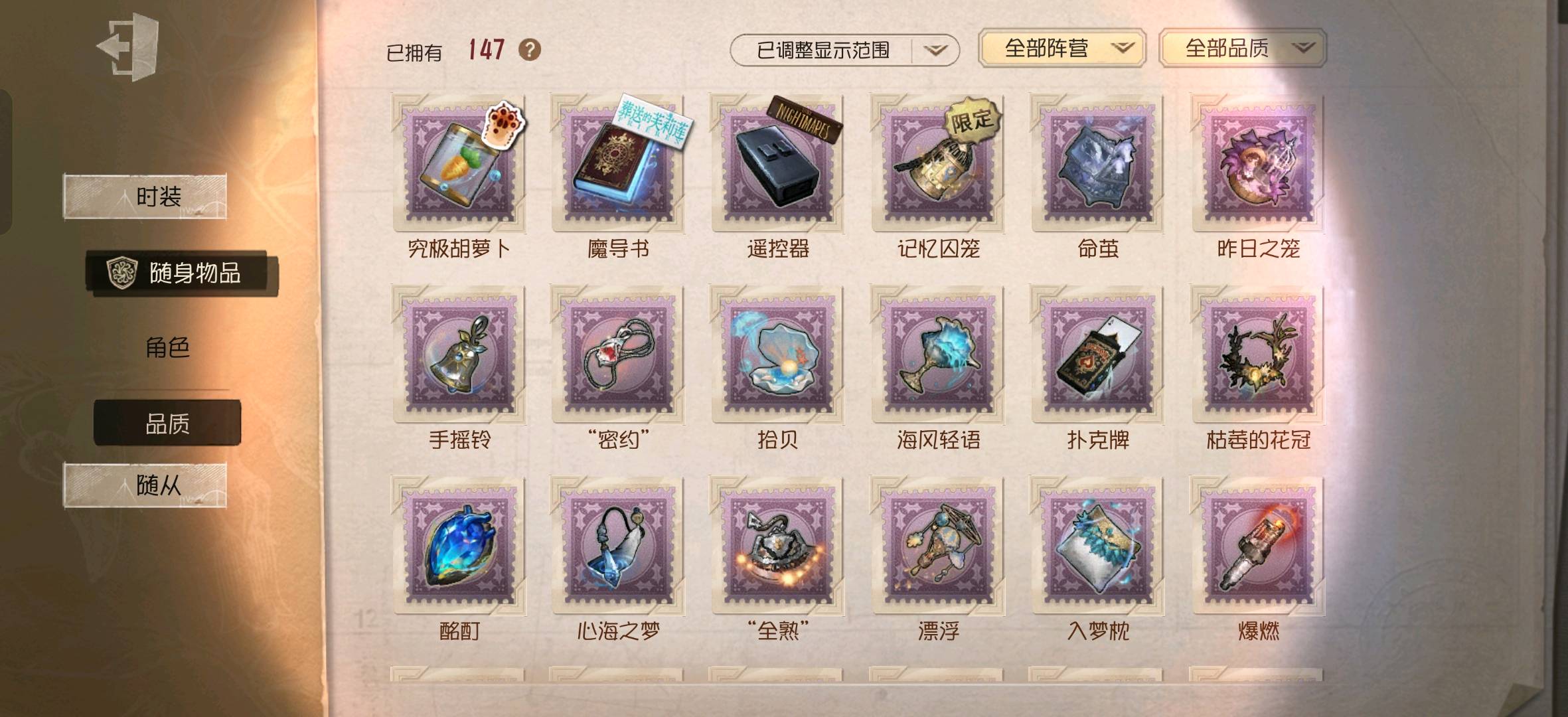 - 随身物品数量: 147