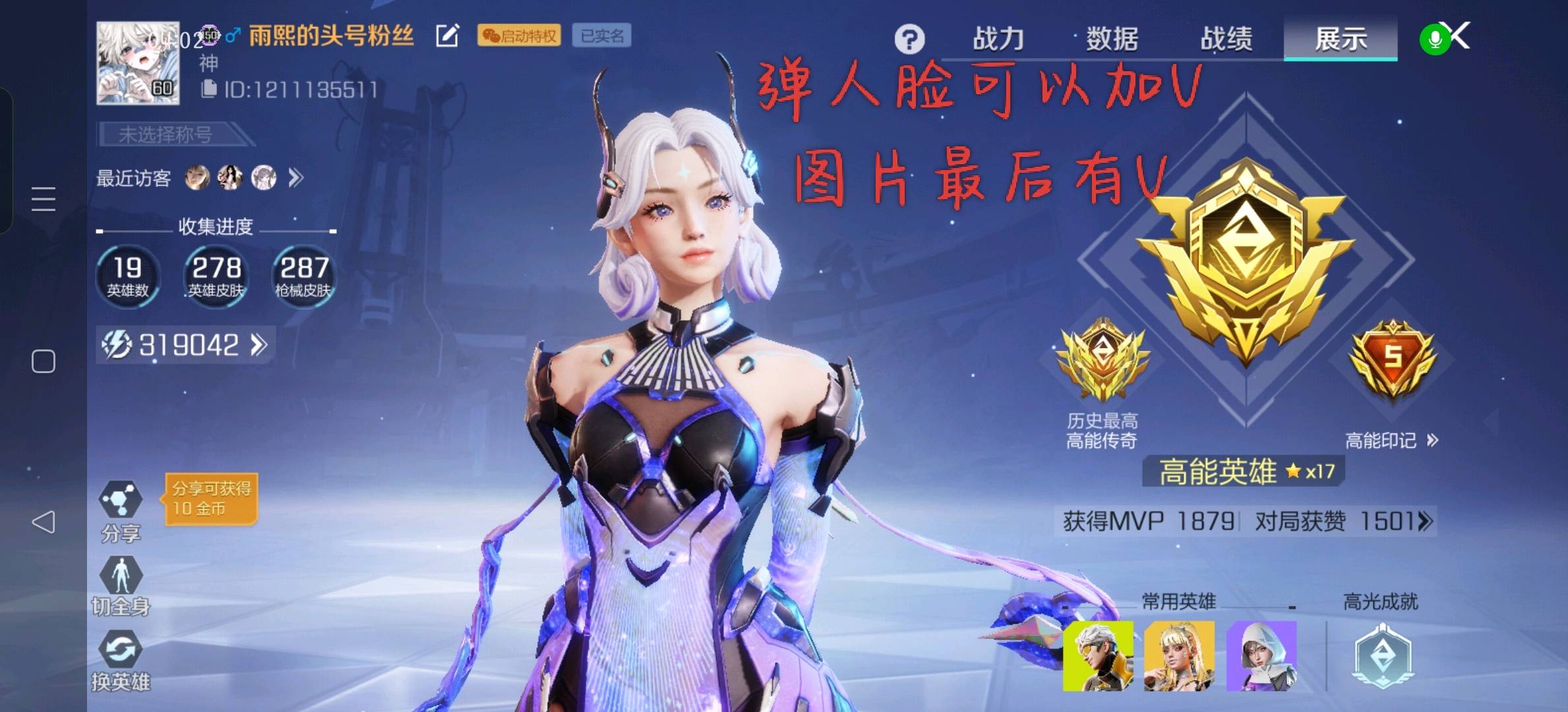出租 31w能爆值 3至宝 50传说皮 17把进化枪皮 弹仁联刃正加我V