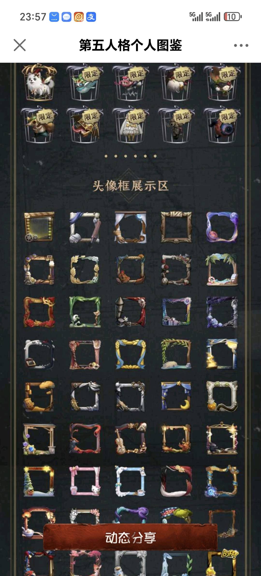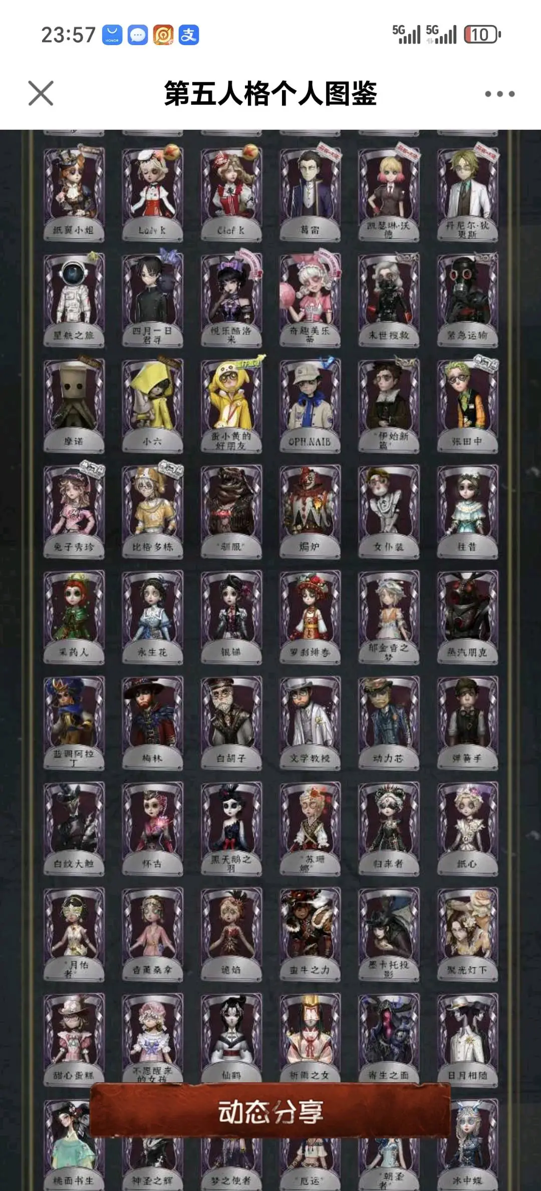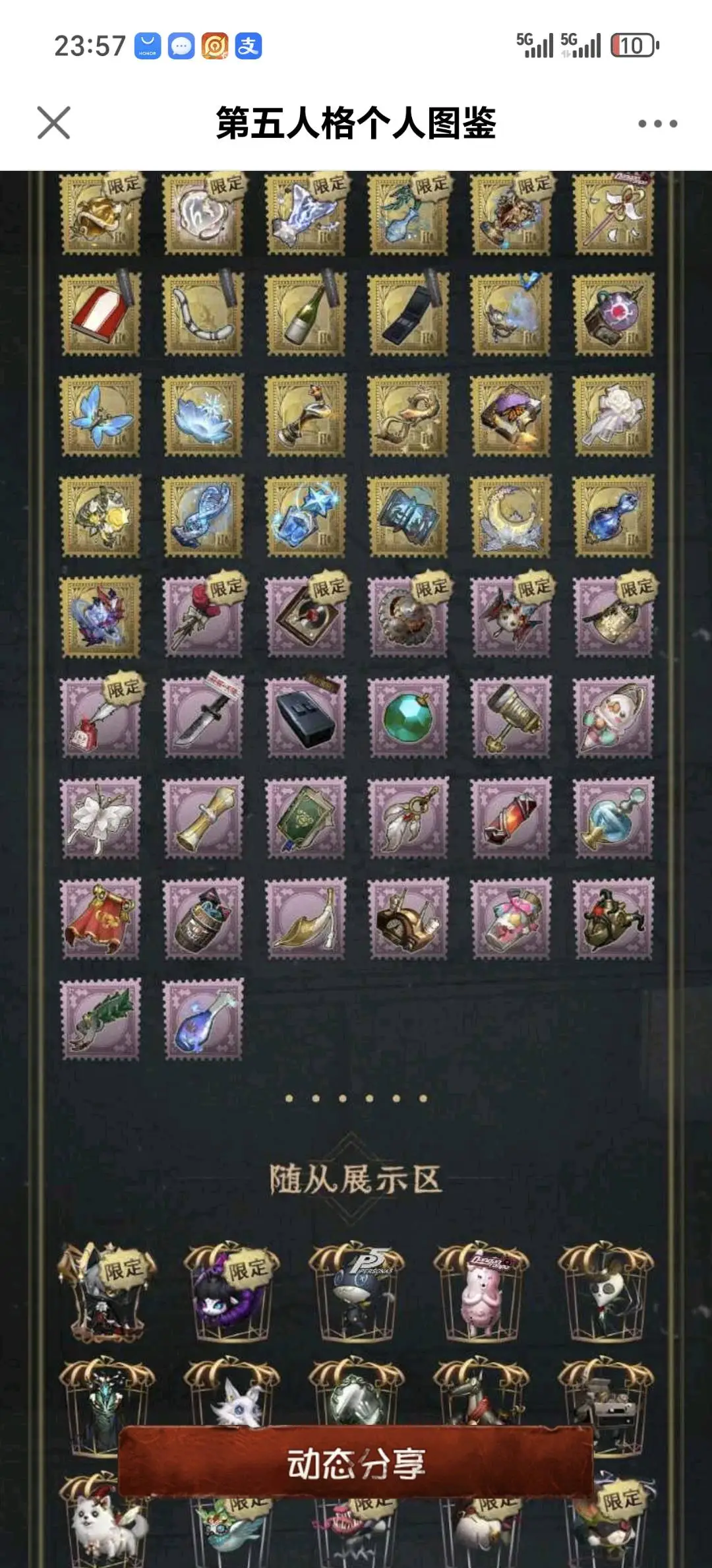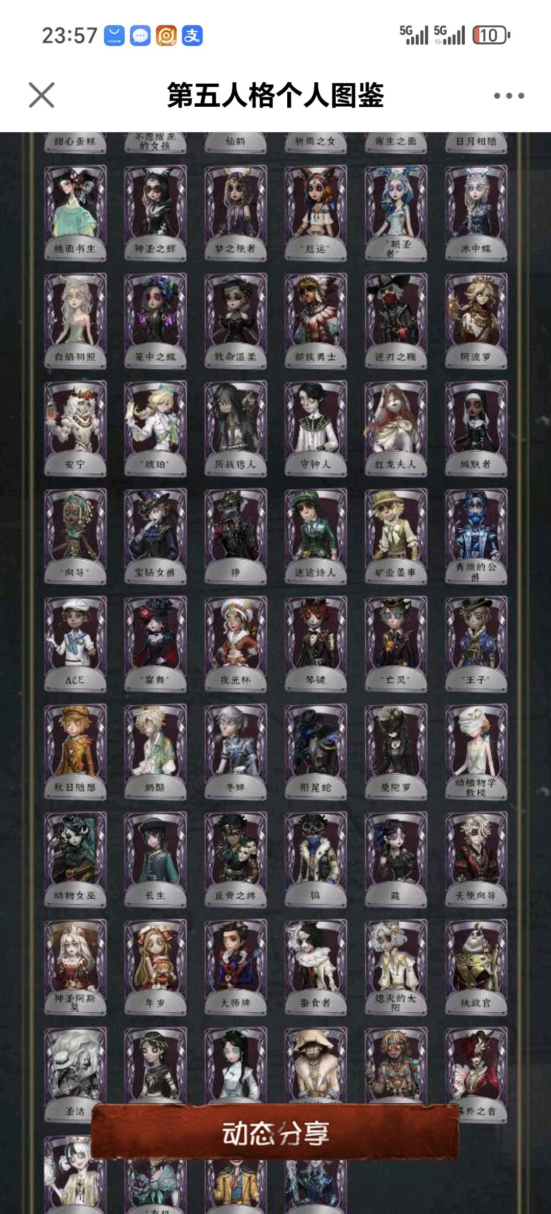 不禁言安官55金白鸽羊DM孤狼加特小情侣一限,守夜人一限文豪野犬全收集斗牛士限定金喧嚣二限+红墨水,杂技演员JoKER,大副CROW,日向创。