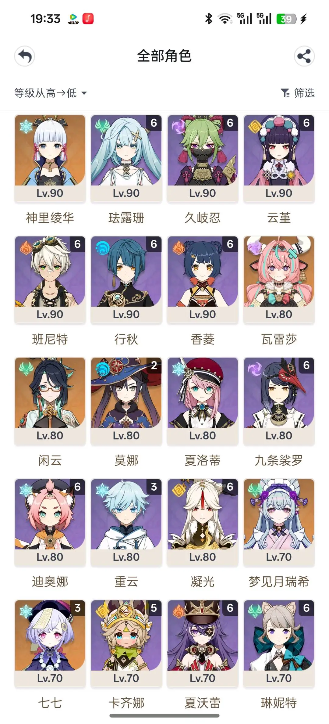 - 金角色数量: 22