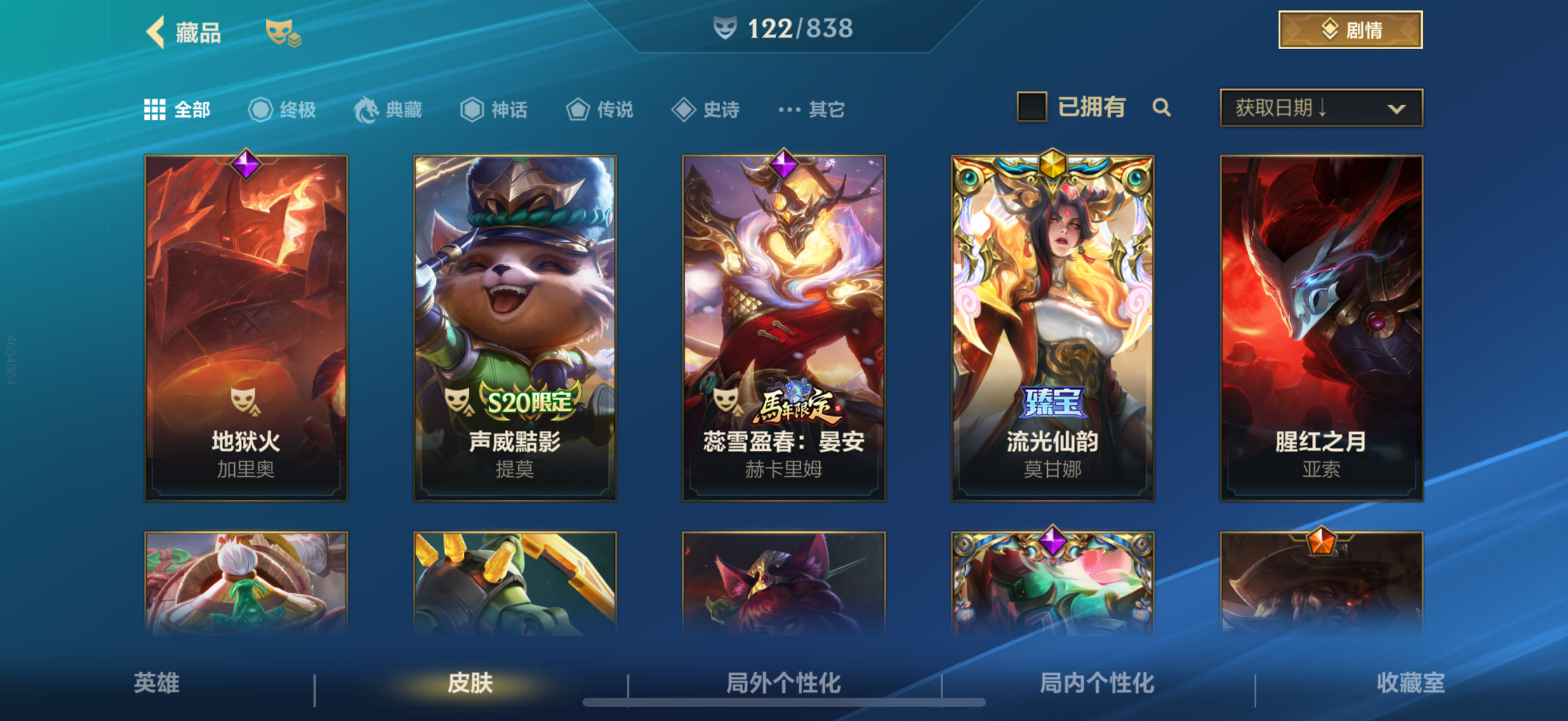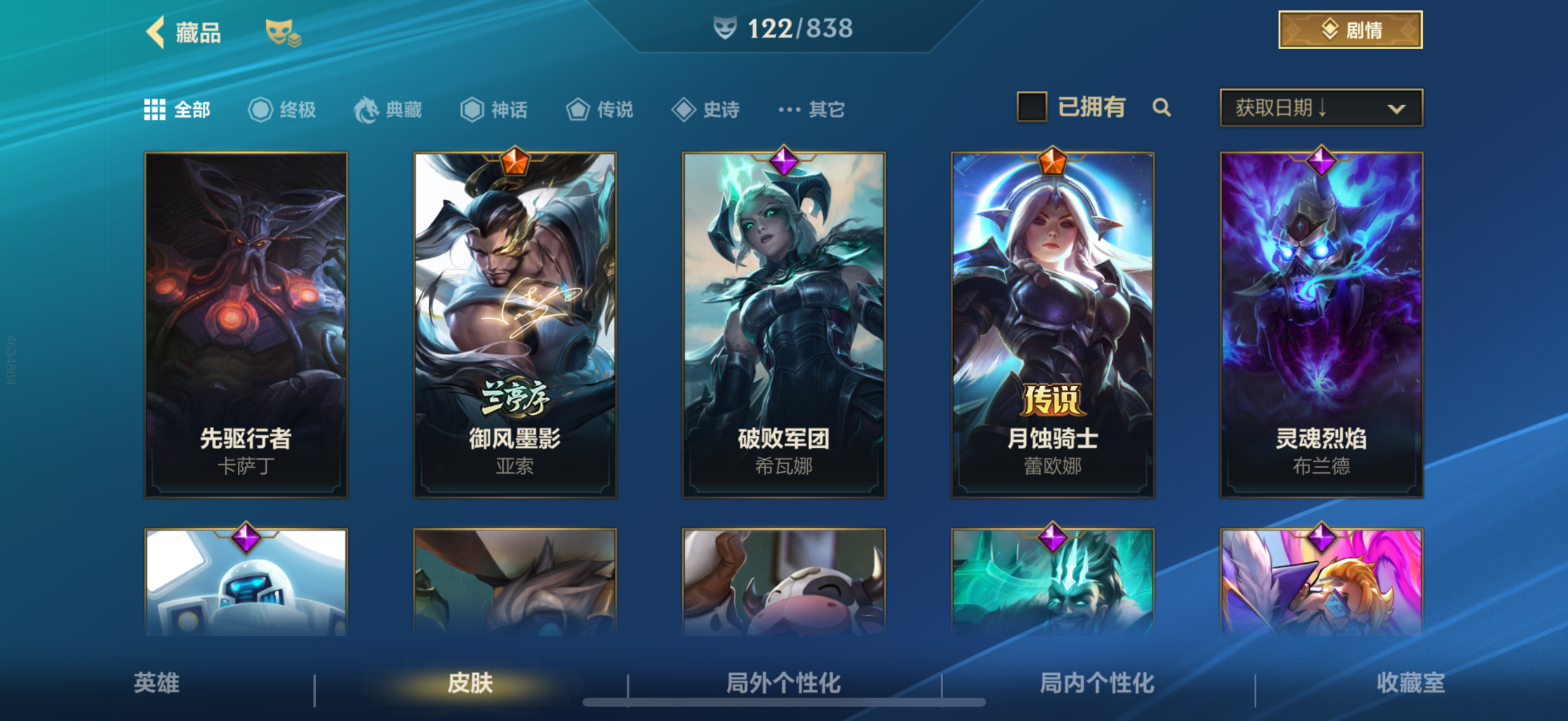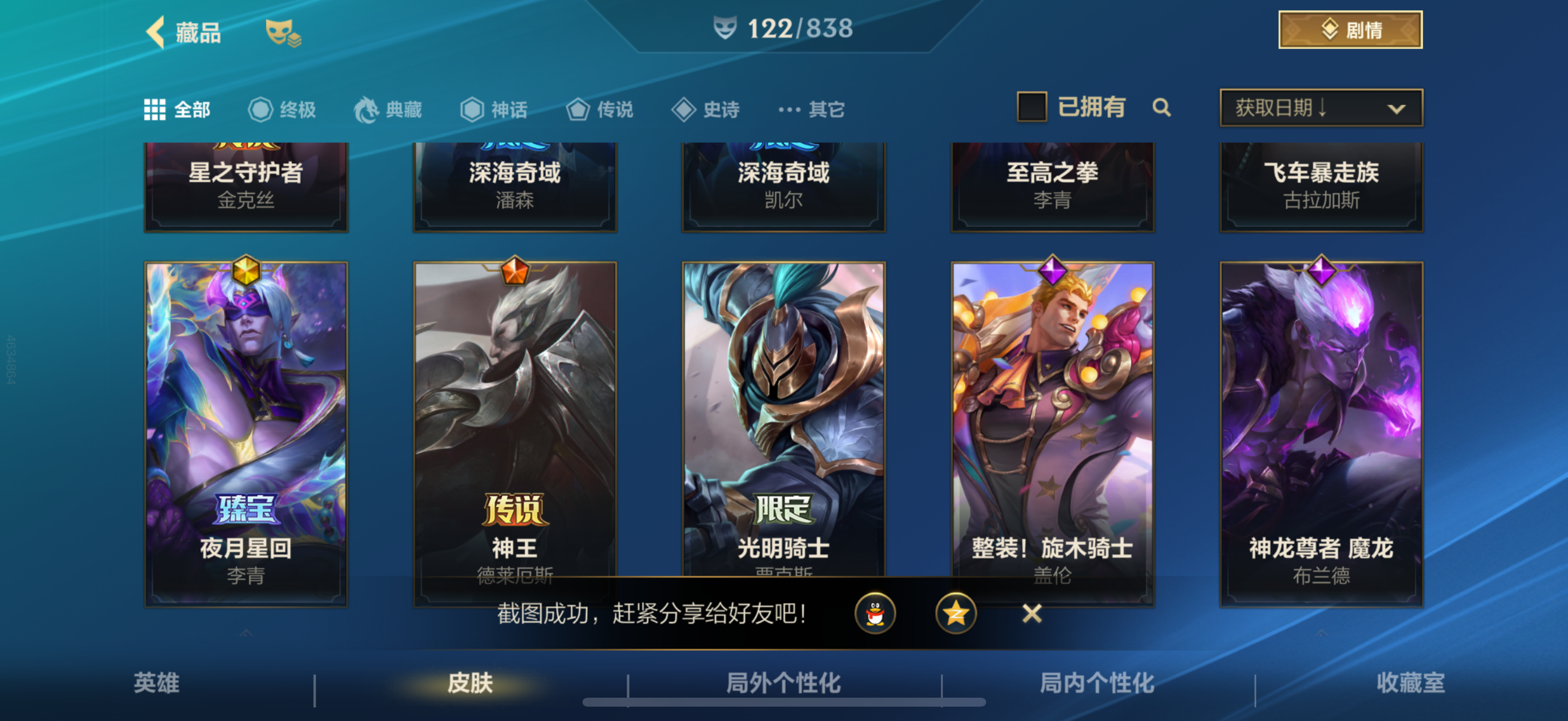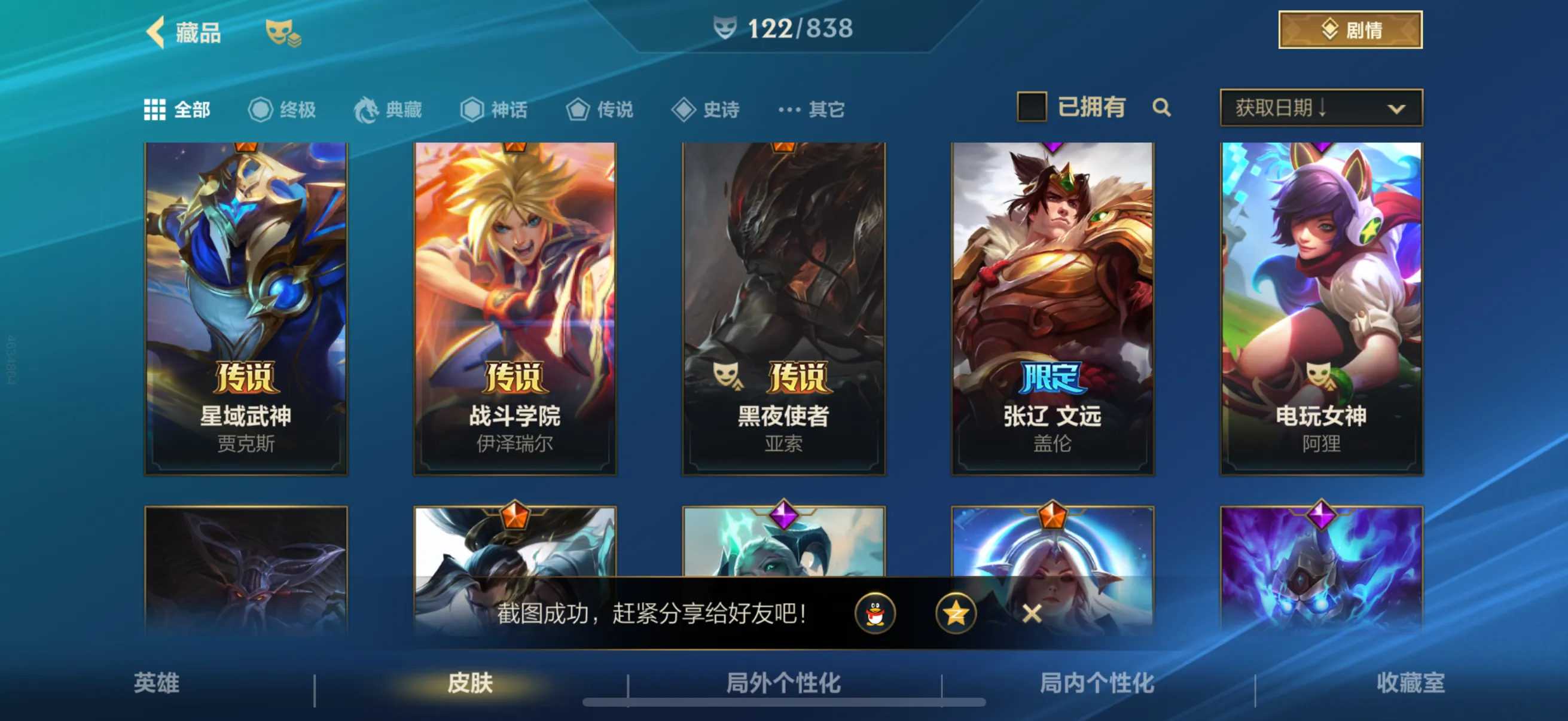 【苹果】 150皮肤!55史诗!15个传说还有几个限定皮肤,亚索的兰亭序,光辉的蛇年限定皮,