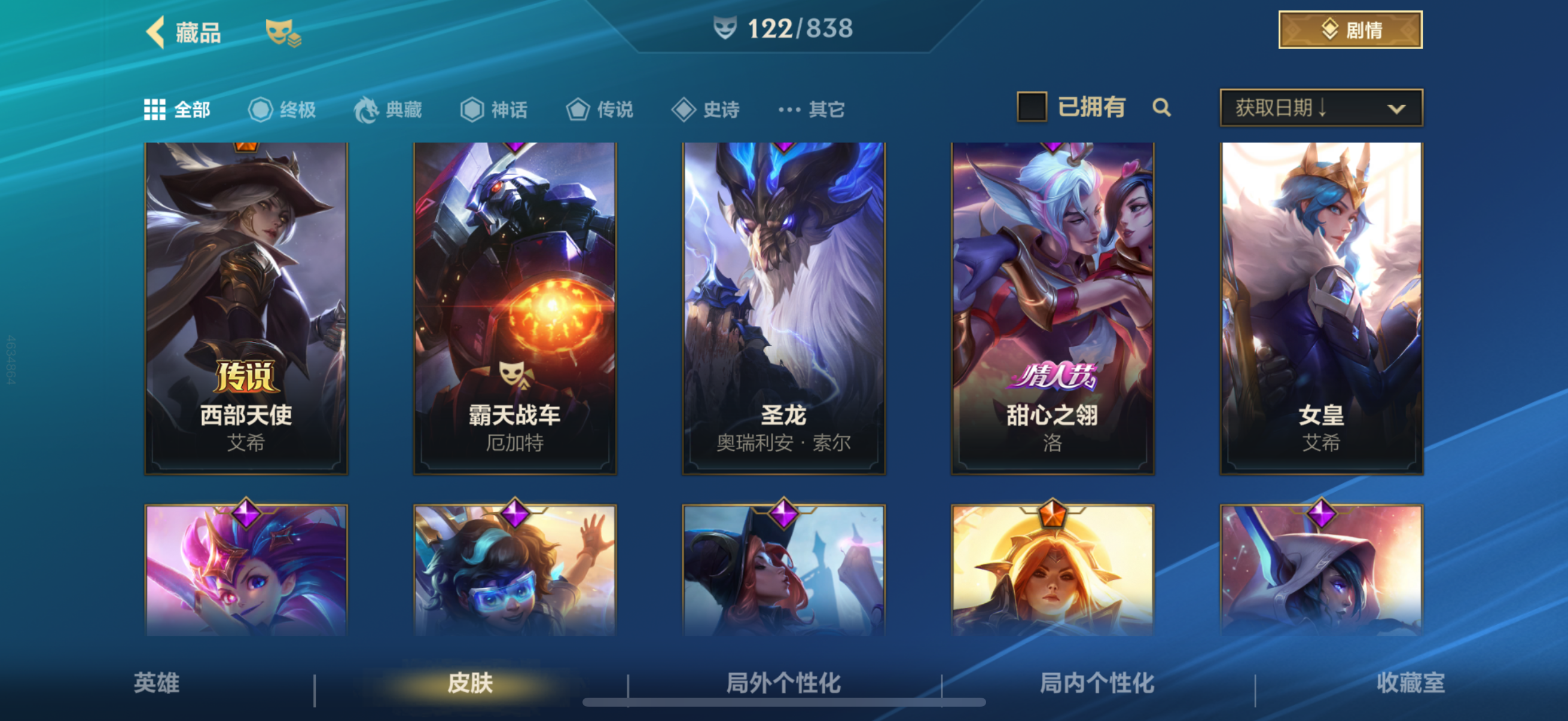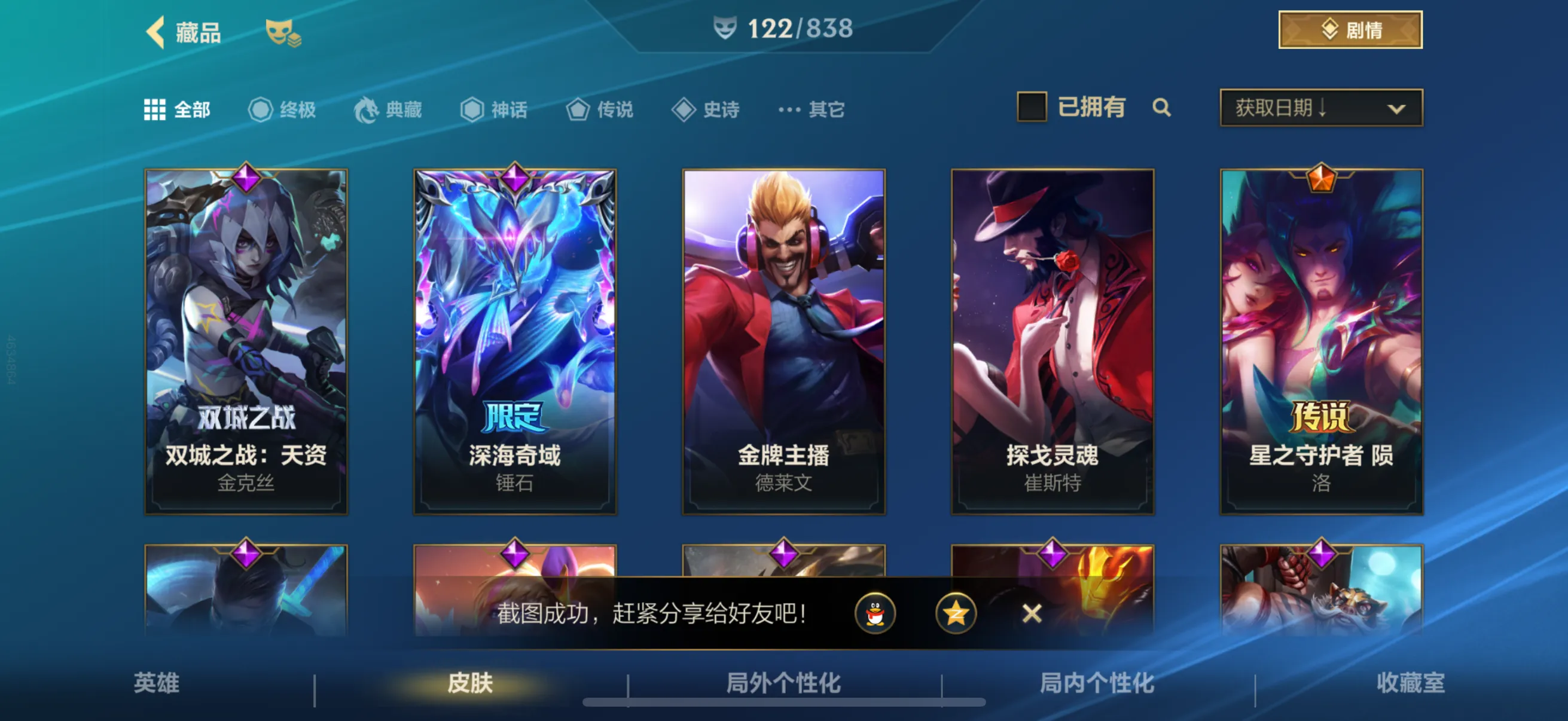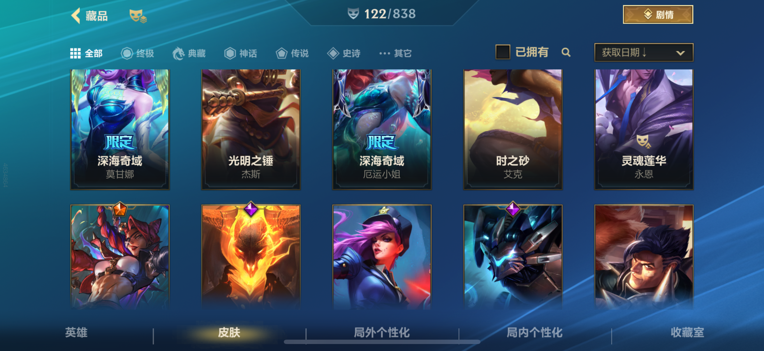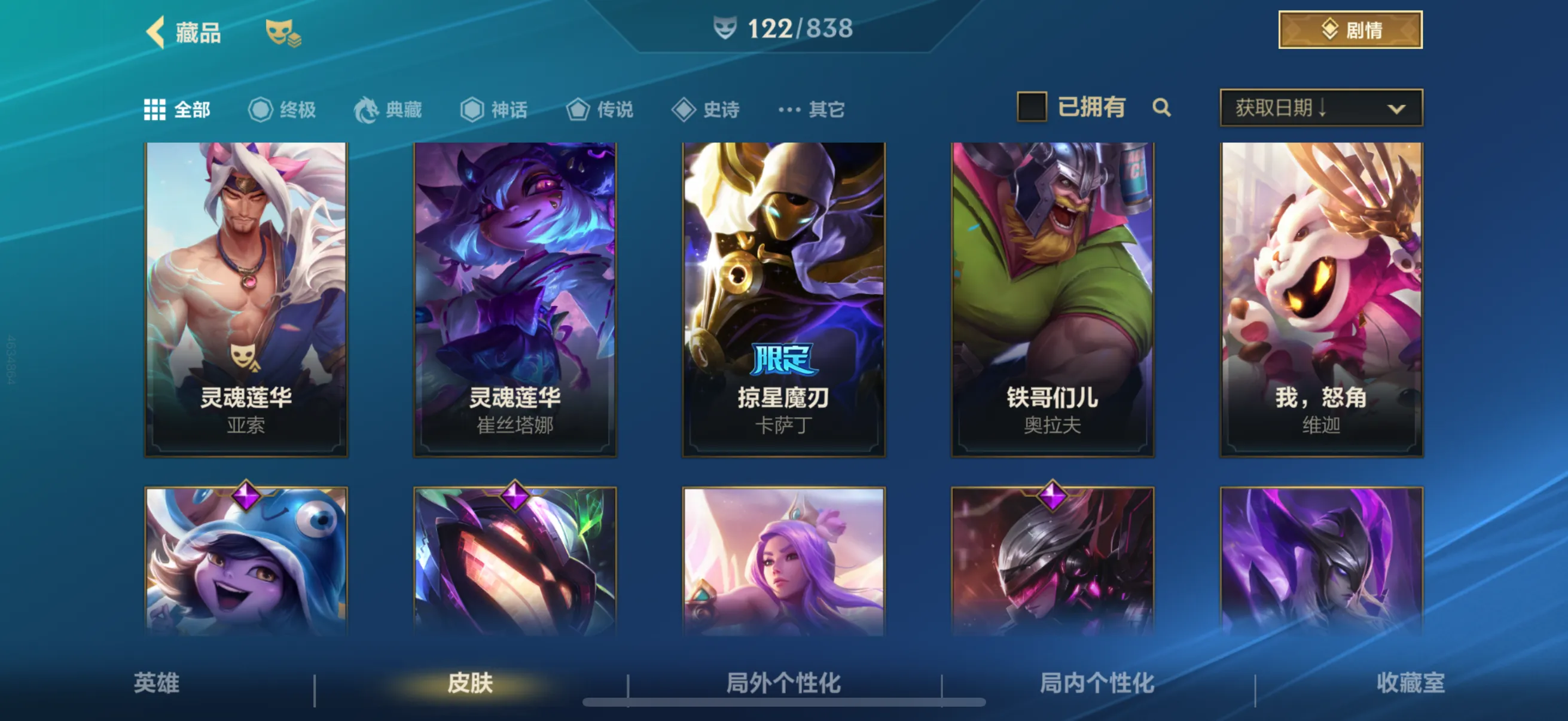 【苹果】 150皮肤!55史诗!15个传说还有几个限定皮肤,亚索的兰亭序,光辉的蛇年限定皮,
